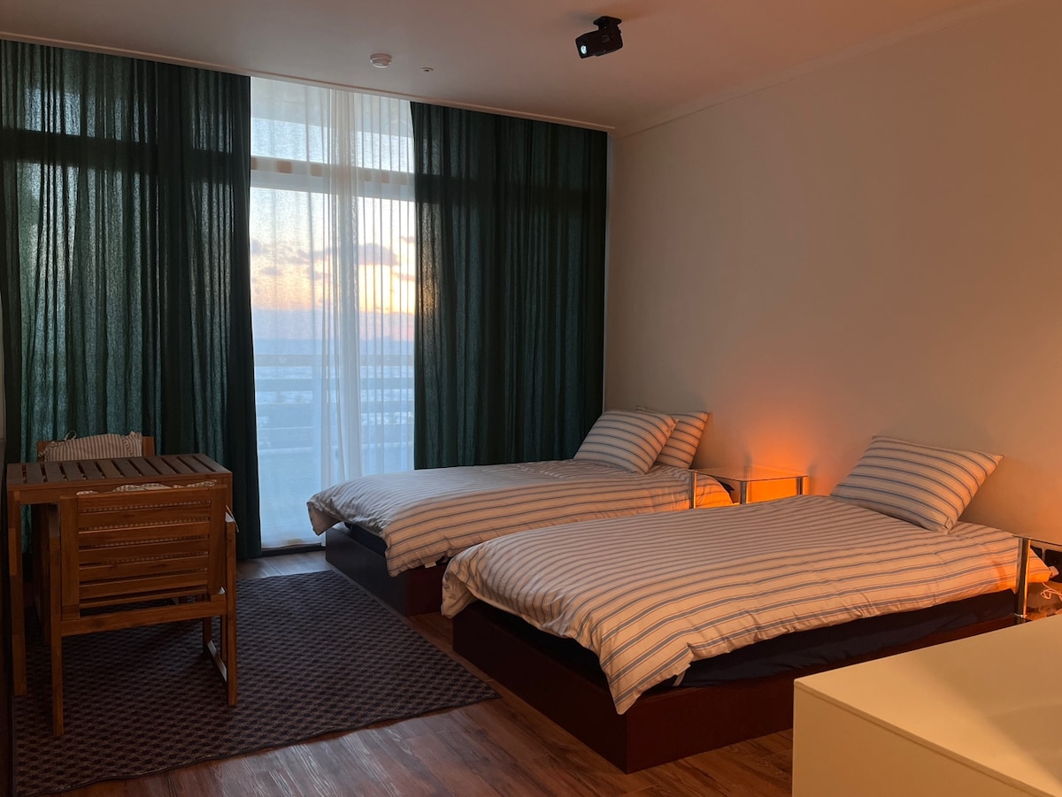 고층 시티뷰가 돋보이는 신축 호텔 여수 코업스테이 편리하게 생활 할 수 있도록 다양한 인프라가 밀집 되어있습니다. 교통편이 좋아 인기 관광지에 차량으로 20분 이내에 이동 가능합니다. 여수 시청에 가까우며 바로 근처에 거북공원이 위치해 있어서 산책하기에 아주 좋습니다. 공원 주변에 여러 음식점들과 카페 등 식사와 음료를 즐길 수 있는 곳이 많습니다. 가족단위 또는 친구들과 우정여행을 계획하시는 분들에게 맞춤형 숙소가 되기에 충분합니다 :) ★ 핫플레이스 학동 술집골목 (도보 8분) ★ 낭만포차 ( 차량 20분 ) ★ 유월드 루지테마파크 ( 차량 12분 ) ★ 웅천해변 ( 차량 10분 ) 최소 2인 기준 , 최대 4인까지 가능 더블 침대 2개 각종 식기류 , 인덕션 , 냄비 , 전자레인지 , 커피포트 , 냉장고 , 세탁기 , 와인잔 4개 바디워시 , 샴푸 , 린스 , 수건 , 헤어드라이기 , 빗