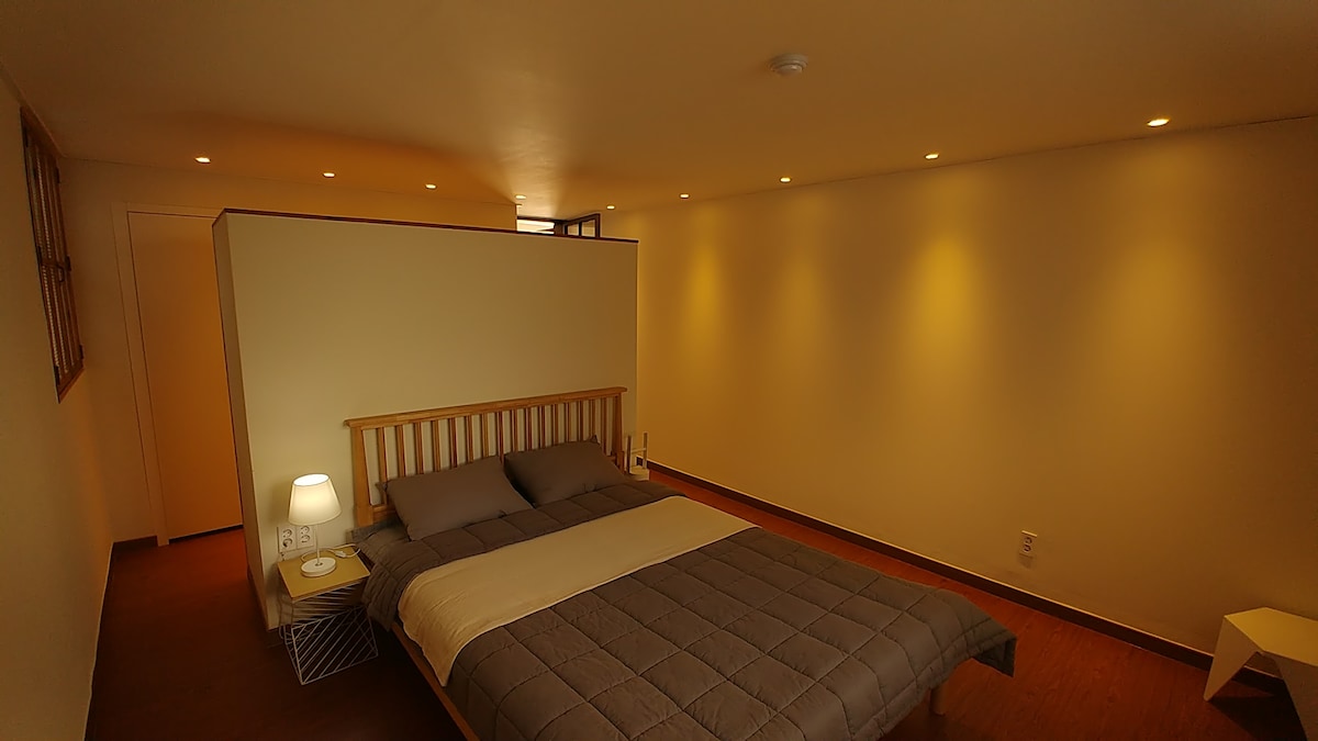 엑스포역에서 2분거리 신축 건물입니다. 2층에 위치한 숙소로 복층 구조이며, 층고가 3층 높이로 여느 복층구조과는 개방감이 확연히 다릅니다. 복층에 더블 침대2개, 아래층에 쇼파베드 2개 준비되어 있고, 화장실, 샤워실 분리되어있습니다. 단독 주택으로 10명도 충분히 즐길수 있는 넓은 공간으로 "홈파티"에 최적의 환경을 갖추고 있습니다. 사진보다 훨씬 여유로운 공간으로 여행중 깨끗한 곳에서 편하게 쉬도록 최선을 다하겠습니다. 문의사항이나 요구사항 있으시면 최대한 맞춰드리겠습니다. 감사합니다.