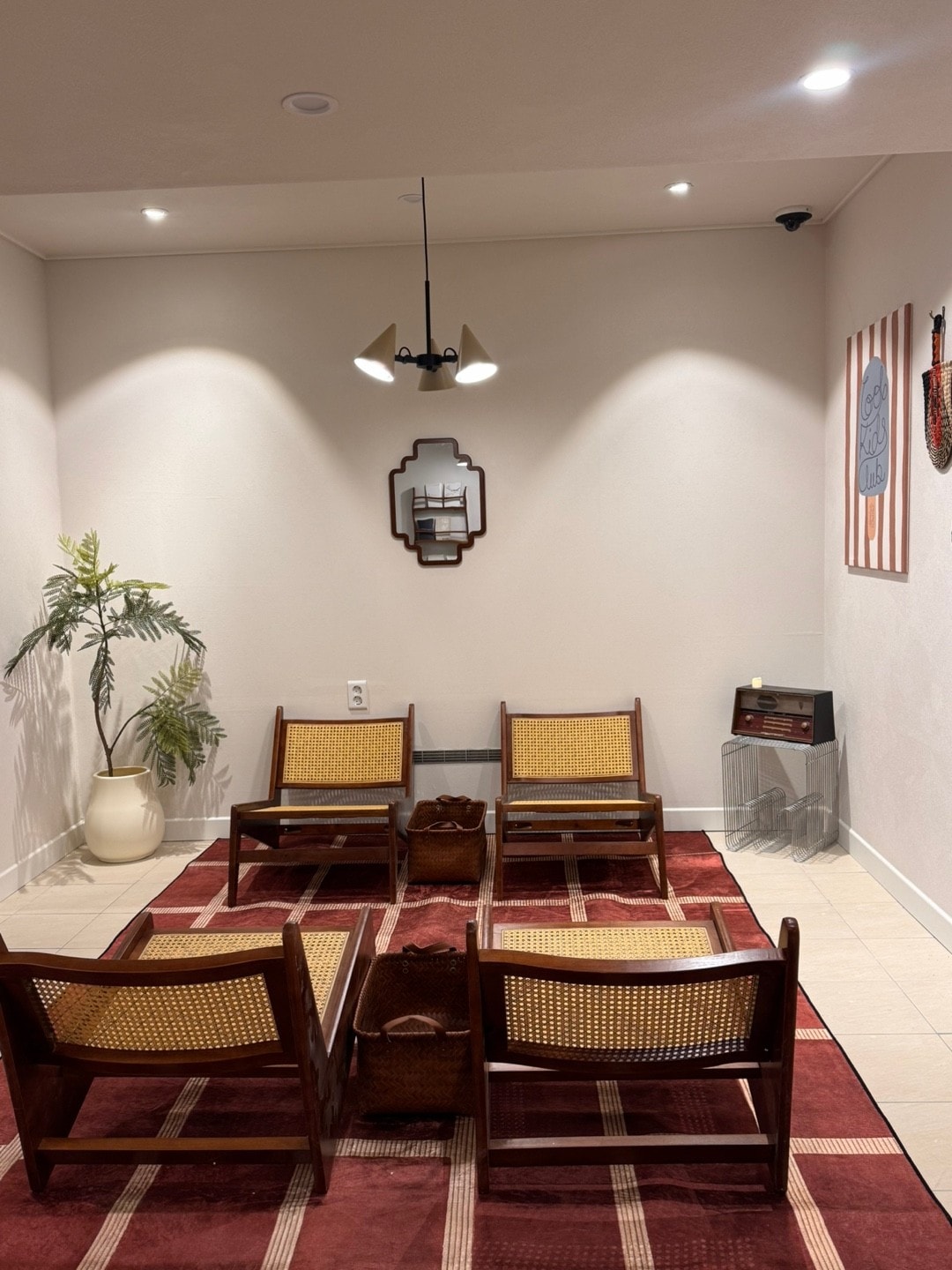 안녕제제의 내추럴스타일의 아침고요 객실을 소개합니다. 객실내 가구 및 소품은 주인장이 함께 운영하고 있는 편집샵 ‘제제의미학’의 제품들로 구성되어 있으며 절제되고 담백한 인테리어의 내추럴한 제제스타일의 감성을 오롯이 느끼실수 있는 최상의 공간입니다. 고요한 아침의 숲과 같은 공간에서 힐링할 수 있는 '아침고요' 추천드립니다. /안녕제제 게스트하우스 본관 1층에 위치한 객실로 거실1, 침실1, 화장실 구조입니다 * 주방은 취사는 불가능하며 전자렌지와 미니 냉장고가 있습니다 /아침고요 객실은 내추럴 라이프스타일의 컨셉으로 따뜻한 감성의 원목가구와 소품들로 셋팅되어진 공간입니다 /주인장이 함께 운영하고 있는 제제의미학에서 판매되는 가구와 소품으로 셋팅되어져 있습니다 [가구] - 수입가구 - 이태리 페르도미어 침대 매트리스 [베딩] - 꼬또네 (구스솜) [주방용품] - 냉장고, 전자레인지, 식기류(접시, 컵, 수저, 포크, 젓가락) 음식반입가능* - 커피포트, 캡슐커피머신