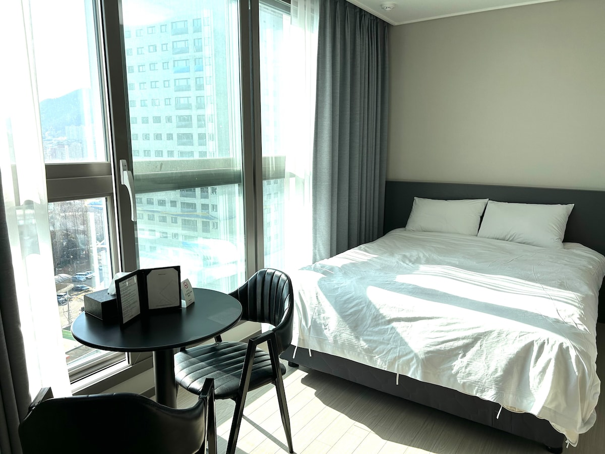 고층 시티뷰가 돋보이는 신축 호텔 여수 코업스테이 편리하게 생활 할 수 있도록 다양한 인프라가 밀집 되어있습니다. 교통편이 좋아 인기 관광지에 차량으로 20분 이내에 이동 가능합니다. 여수 시청에 가까우며 바로 근처에 거북공원이 위치해 있어서 산책하기에 아주 좋습니다. 공원 주변에 여러 음식점들과 카페 등 식사와 음료를 즐길 수 있는 곳이 많습니다. 가족단위 또는 친구들과 우정여행을 계획하시는 분들에게 맞춤형 숙소가 되기에 충분합니다 :) ★ 핫플레이스 학동 술집골목 (도보 8분) ★ 낭만포차 ( 차량 20분 ) ★ 유월드 루지테마파크 ( 차량 12분 ) ★ 웅천해변 ( 차량 10분 ) 최소 2인 기준 , 최대 4인까지 가능 더블 침대 2개 각종 식기류 , 인덕션 , 냄비 , 전자레인지 , 커피포트 , 냉장고 , 세탁기 , 와인잔 4개 바디워시 , 샴푸 , 린스 , 수건 , 헤어드라이기 , 빗