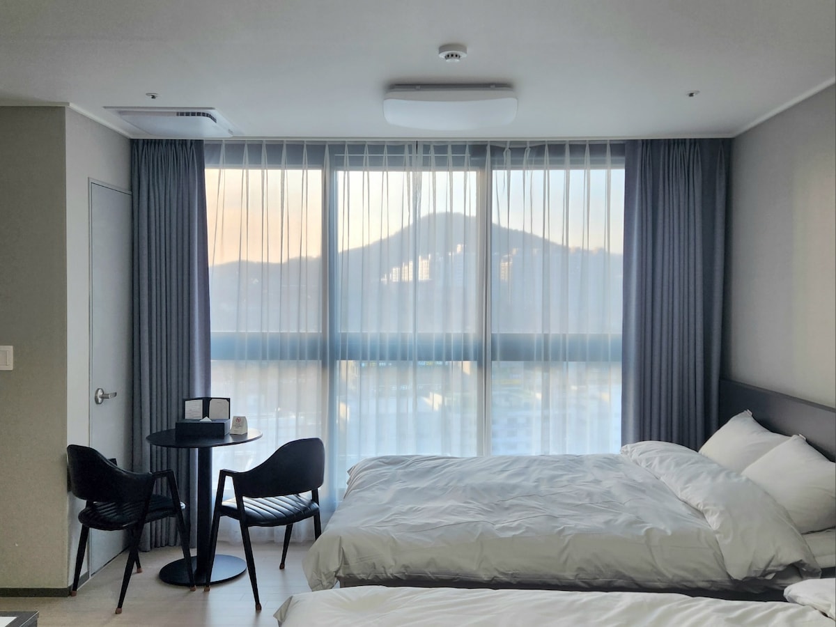 여수 학동의 상업 중심부에 자리하여 입지적 편리함과 세련된 스타일을 모두 갖춘 2023년 신축레지던스 입니다. 최대 4인투숙가능하며 에머니티가 완비되어있습니디. 연인,친구 및 가족들과 행복한 추억 만들어보세요♡