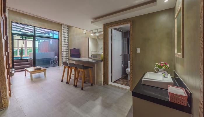 18 평, 스파시설보유 [추가인원 관련안내] 최대인원을 초과할 경우 이용 및 환불이 불가합니다. 최대인원을 반드시 확인하시고 예약하시기 바랍니다. 에어비앤비에서는 유아(만 2세미만)는 인원수와 요금에 포함되지 않으나, 우리 숙소는 유아(만 2세미만)도 숙박인원에 포함되니 유아(만2세 미만)의 요금은 현장에서 지불하셔야 합니다. 예약 후에는 숙박일자 변경, 예약인원수 변경이 불가하니 반드시 환불정책을 확인하시고 예약 취소 후 다시 예약을 해주세요. 환불정책에 따라 위약금이 발생할 수 있습니다.