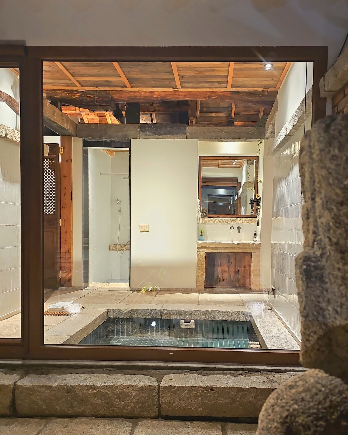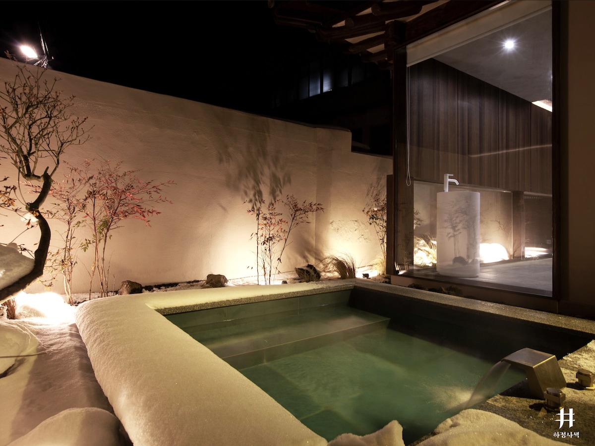 전주한옥마을 안에 자리잡은 넓고 프라이빗한 한옥 독채 펜션입니다. 안에 위치하고있어 메인도로 및 여행을 즐기기에 좋은 위치에 있어요. 돌아다니다가 지칠때 잠시 쉬다 가시기에도 너무 좋습니다. 분리된 방2개와 퀸사이즈.더블사이즈 침대 2개,떨어져있는 화장실2개와 분리되있는 세면대는 많은 인원이 오더라도 쾌적하게이용할 수 있으며 커플끼리 왔을때도 너무나 편합니다.게다가 몸의 피로를 전부 풀어줄 건식사우나와 깊고 넓은 자쿠지는 남과 다른 여행의 추억을 쌓을 수 있습니다. 부모님을 모시고와서 한국의 특별한 경험을 나누시는걸 추천드려요.게다가 도로에서 작은 골목길 안에 프라이빗하게 우리만의 시간을 가지는것이 가능합니다. 겨울엔 자쿠지에서 창을 열고 노천욕을 즐기며 정원의 아름다움을 즐기고 건식사우나에서 몸을 녹이다가 정원에서 준비된 장작화로에서 불멍을 즐기며 여유를 즐길 수 있고 여름에는 에어콘아래에서 시원하게 즐기시다 정원에 있는 넓은 족욕탕에서 푸른녹음을 즐기며 색다른경험이 될것입니다