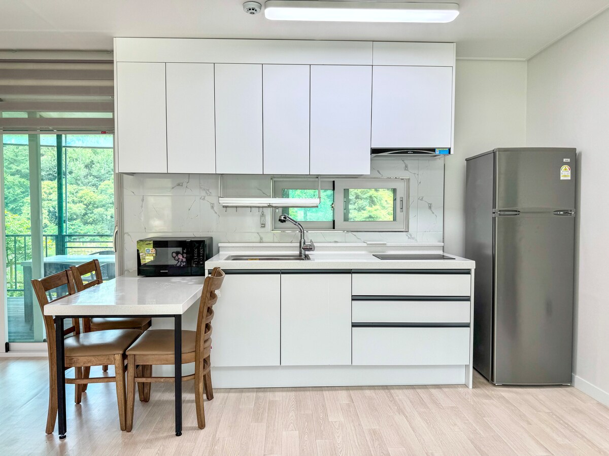 ์๋น ๊ณ ์ํจ์ ๋ด์ ๊ณณ, ์๊ณกํ์ . ์ ์์ง ๋ทฐ๋ฅผ ๋ฐฐ๊ฒฝ์ผ๋ก ํ ์๊ณจ ๋ง์ ๋์๋ฝ์ ํ์ ์ ๋๋ค. ์ ๊ฐ ์ง์ ์ค๊ณํ๊ณ ์ง์ ๋ฐ๋ปํ ๊ณต๊ฐ์ ๋๋ค. ์์ฐ์์์ ํ๋ง์ ๋๋ผ๊ณ ์ถ๋ค๋ฉด ๋ฐ๋ก ์ฌ๊ธฐ์ ๋๋ค. โ๏ธ์์ ์ผ์ชฝ ์์ ๋ฐ ์ผ์ชฝ ํ ๋ผ์ค ์ฌ์ฉ โ๏ธ์ฒดํฌ์ธ&์ฒดํฌ์์ ์ฒดํฌ์ธ ์คํ 3์, ์ฒดํฌ์์ ์ค์ 11์ โ๏ธ์์ค ๋ฐ ์์์ฉํ 1์ธ๋น ์๊ฑด 2์ฅ ์ ๊ณต โ๏ธ์ฃผ๋ฐฉ ๋์ ๊ฐํ ์๋ฆฌ(์์ , ๊ณ ๊ธฐ ๋ฑ)์ ์ฃผ๋ฐฉ ์ด์ฉ ๋ถ๊ฐ โ๏ธ์์ ์ ์ฃผ์ฐจ์ฅ ์์ต๋๋ค. โ๏ธ์์ดํ์ด ์ด์ฉ ๊ฐ๋ฅํฉ๋๋ค. โ๏ธ์ฃผ์ ์ฅ์ ๊ฑฐ๋ฆฌ -๊ธํ ์ ์์ง : 3km(์ฐ์ฑ ํ๊ธฐ ์ข์ต๋๋ค) -๊น์ ๊ธ์ฐ์ฌ : 4km -๊น์ ์ญ : 18km ๐๐ป์ธ์ ๊ธฐ์ค : 3์ธ ์ต๋ 10๋ช ๊ฐ๋ฅ, ์ถ๊ฐ์๊ธ 1๋ง์ ์ ๋๋ค. -24๊ฐ์~์ฑ์ธ : 1๋ง์ -24๊ฐ์๋ฏธ๋ง : ๋ฌด๋ฃ ๐๐ป์ ๋ฃ ์ ํ์ฌํญ ๋ฐ๋ฒ ํ : 2๋ง์ ๋ถ๋ฉ : 2๋ง์ ์ฒดํฌ์ธ ์ ์ ์ด์ฉ ์ฌ๋ถ ์๋ ค์ฃผ์ธ์. ๐ถ๋ฐ๋ ค๋๋ฌผ ๋๋ฐ ์๋ด์ฌํญ -์ํ๊ฒฌ(5-7kg ์ดํ) ๊ฐ๋ฅ -์คํ๊ฒฌ ๋ฐ ๋ํ๊ฒฌ์ ๋ถ๊ฐ