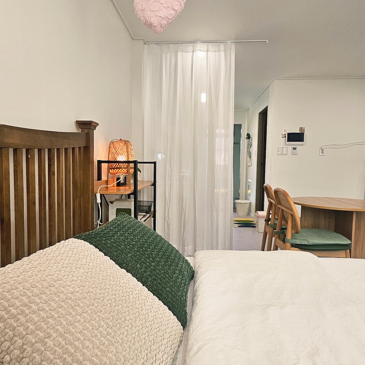 住宅(주택) 𓍊𓋼.⋆ 나무가 사는집 북수원의 조용한 주택가에 위치하고 있습니다. 호스트가 나고 자란 따뜻한 추억이 가득한 단독주택이며 2층에는 부모님이 여전히 거주하고 계십니다. 40년된 구옥의 일부를 리모델링 하였고 숙소에 있는 모든 원목가구는 나무공방을 운영하고있는 남편이 직접 제작하였습니다. 가구 쇼룸 겸 저희가족의 별장이기도 한 프라이빗 공간을 많은 사람들이 경험하실 수 있도록 숙소로 오픈하게 되었습니다. 여행객들에게는 낯선 도시 수원, 이곳에 오셔서 불편함없이 하루를 편히 보내실 수 있도록 섬세히 준비하였습니다. . . . 안방과 거실 모두 남서향을 바라보는 창이라 쨍한 오후햇살이 들어올때도 예쁘지만, 비오는날의 습도높고 어둑한 분위기가 아주 운치있는 레트로 감성 숙소 입니다. ☾ 밤이 매력적인 이 곳, 묵직한 독채 주택에서 편안하게 휴식하시기를 바랍니다. ⠀ ⠀ 𓂃