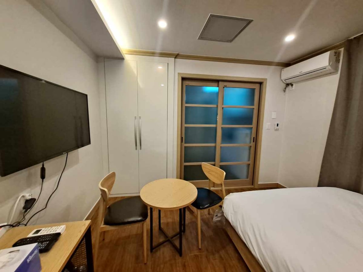 [정식등록업체] 원룸형 신축 건물 숙소로, 1인 혹은 커플분들이 이용하시기에 좋은 공간입니다. 침대는 슈퍼 싱글 사이즈이며, 문의 주시면 침구 여유분 준비해드려요. 📌 저희 숙소에서는 락스나 강한 화학 세제는 사용하지 않습니다. 피부가 예민하신 분들도 안심하실 수 있도록 일반 세제를 사용하여 관리하고 있어요. 화학 약품 냄새 없이, 보다 편안하고 건강한 숙소를 지향합니다. *매일 침구류 교체 *세면대 led 필터 사용 *세스코 방역 🚗 차량 등록시 선착순 무료 주차 가능 (76대) 💛 체크인은 3시, 체크아웃은 11시입니다 💛 *비대면 체크인 원칙으로 하고 있습니다. *넷플릭스, 쿠팡플레이 자동로그인 되어 있어요! *왓챠, 티빙, 디즈니, 유튜브 등 (개인 계정 로그인시 가능) 마샬 블루투스 스피커 다이슨 선풍기 일리 커피머신 제습기 구비 완료 💛