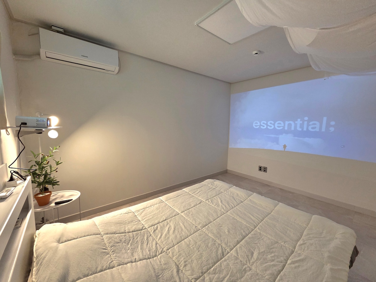 안녕하세요 ^^ 저희 숙소에 관심을 가져주셔서 감사합니다. 저희 숙소는 방2개 화장실 1개로 이루어진 숙소 입니다. 숙소내에서는 간단한 요리를 하실 수 있도록, 냄비 후라이팬 그리고 집기류가 준비되어 있습니다. 소금 후추 식용유는 물론 칼 가위 도마가 준비되어 있어, 편하게 요리하실수 있게 준비가 되어져 있습니다. 50인치 티비로 원하시는 OTT를 보실 수 있고, 넒은 주방 테이블에서 가족 혹은 연인, 친구들끼리 편히 식사가 가능합니다 ^^