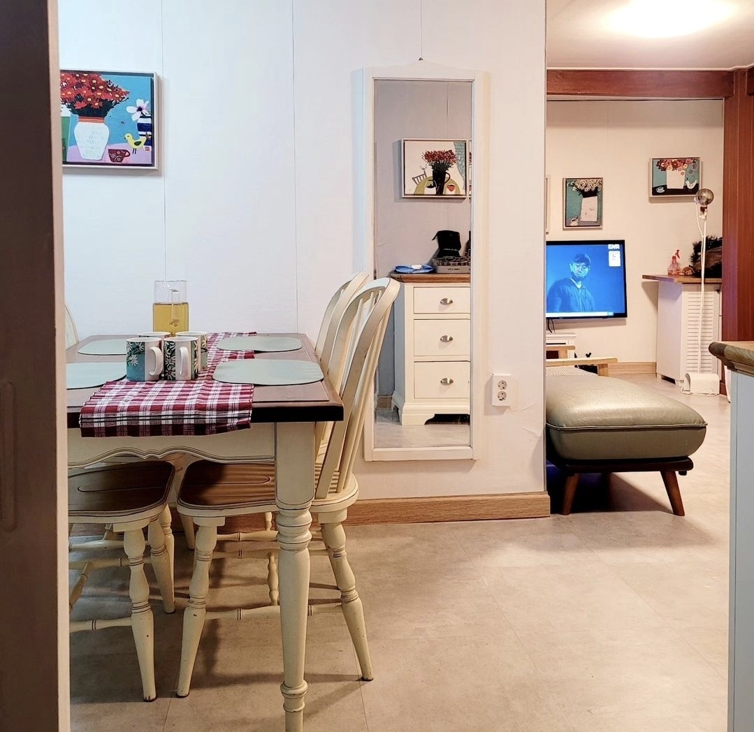 -건물 2층에 위치한 공간입니다. 침실 두개와 거실 그리고 화장실이 있습니다 -1분 거리 황방 gs 편의점과 있습니다. -넓고 깨끗하게 새로 단장한 2층 집 전체 독자 공간 입니다. -거실이 넓어 친구 가족 간 즐기기에 충분 하며 3인이 사용할 수 있는 식탁도 준비되어 있습니다. -숙소는 방 2개 와 거실이며 식탁과 주방이 설치 되어 있습니다. 주방에 요리는 할 수 있는 그릇과 냄비가 준비 되어 있으며 전자레인지와 밥솥도 준비 되어 있습니다. -큰 방에는 싱글 침대가 2개 작은 방도 하나의 침대가 있어 더욱 편안한 쉼터가 될 것으로 봅니다. - 거실에는 대형 tv가 준비 되어 있으며 스타 일러가 있고 각 공간에 에어컨이 있는 쾌적한 공간 입니다. -숙소의 벽은 그림으로 장식되어 있어 갤러리 공간으로 꾸몄습니다. -한옥 마을과 는 10분 거리이며 신 시가지와는 5분 위치 하고 있으며 집 주변에 서신동 막걸리 골목과 가맥집이 있습니다. -주차는 집 앞 및 근처 가능 합니다.