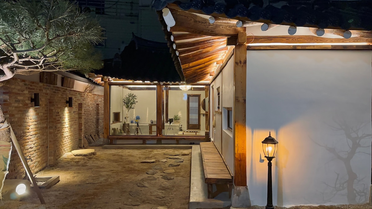전주한옥마을 안에 자리잡은 넓고 프라이빗한 한옥 독채 펜션입니다. 안에 위치하고있어 메인도로 및 여행을 즐기기에 좋은 위치에 있어요. 돌아다니다가 지칠때 잠시 쉬다 가시기에도 너무 좋습니다. 분리된 방2개와 퀸사이즈.더블사이즈 침대 2개,떨어져있는 화장실2개와 분리되있는 세면대는 많은 인원이 오더라도 쾌적하게이용할 수 있으며 커플끼리 왔을때도 너무나 편합니다.게다가 몸의 피로를 전부 풀어줄 건식사우나와 깊고 넓은 자쿠지는 남과 다른 여행의 추억을 쌓을 수 있습니다. 부모님을 모시고와서 한국의 특별한 경험을 나누시는걸 추천드려요.게다가 도로에서 작은 골목길 안에 프라이빗하게 우리만의 시간을 가지는것이 가능합니다. 겨울엔 자쿠지에서 창을 열고 노천욕을 즐기며 정원의 아름다움을 즐기고 건식사우나에서 몸을 녹이다가 정원에서 준비된 장작화로에서 불멍을 즐기며 여유를 즐길 수 있고 여름에는 에어콘아래에서 시원하게 즐기시다 정원에 있는 넓은 족욕탕에서 푸른녹음을 즐기며 색다른경험이 될것입니다