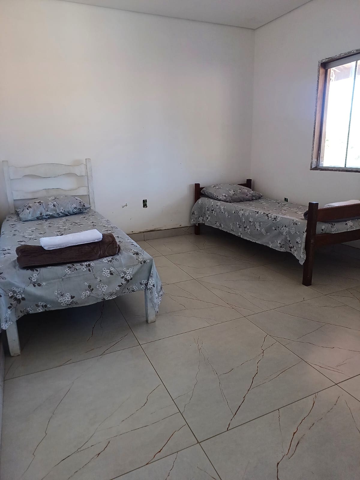 Prepare-se para uma locação única, especial e completa. Possuímos piscina, sauna, área gourmet completa com sinuca e totó e banheiros externos. Nossa área externa conta com mini campo de futebol gramado, parquinho para as crianças e uma linda fonte com peixinhos. Na área interna da casa temos:cozinha completa, equipada com utensílios básicos; sala com TV e sofá cama de casal; quarto 01 beliche e colchão de casal; quarto 02 cama de casal; quarto 03 6 beliches e banheiro social.