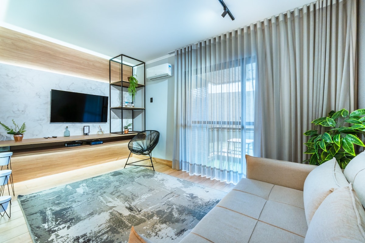 Apto Premium Cambuí – Home Office, Piscina & A/C!
