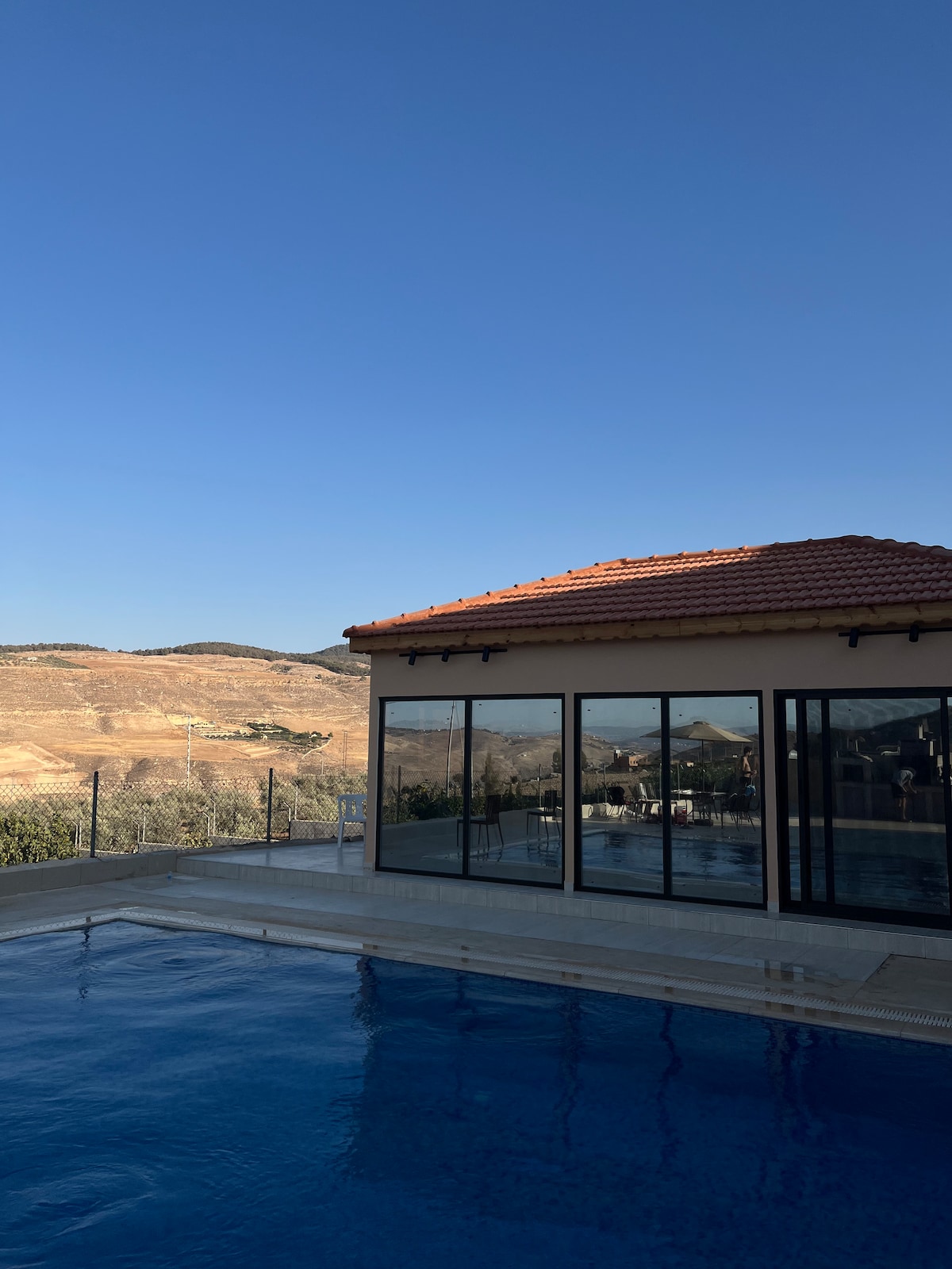 A spacious farm that has a home with a private pool surrounded by trees and located on Jerash mountains. Our place is very attractive for families that have kids, as we provide an outdoor playing area and kids swimming pool . ** special discount for long stays**
