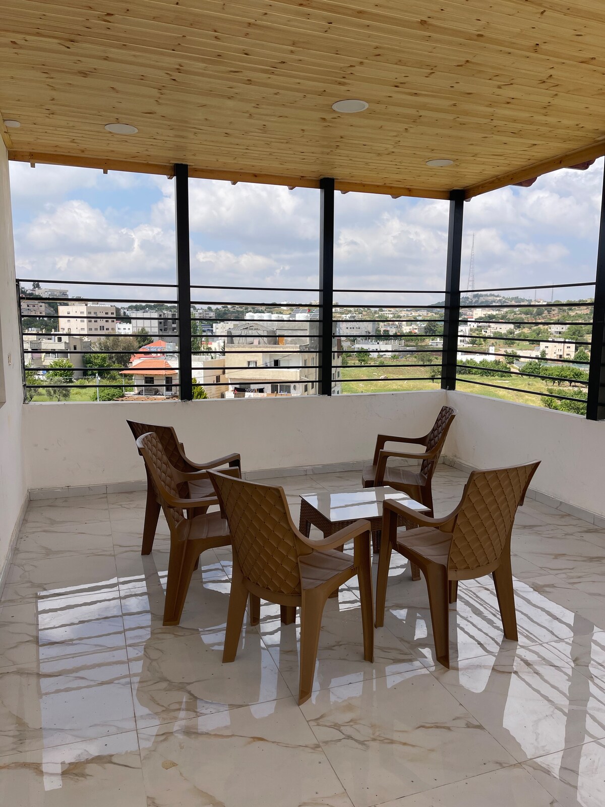 Shams Chalet is built inside a fenced 1.2 Acre land. It is the place were you can enjoy fresh air, sound of silence and all around greenery view from Ajloun Heights all the way down to Jordan Valley at your sight. You can enjoy our farmhouse with a touch of modern design to escape city noise with your friends or family. The only way to understand the sound of silence is to try the rocking chair and watch the breathtaking sunset with a cup of coffee