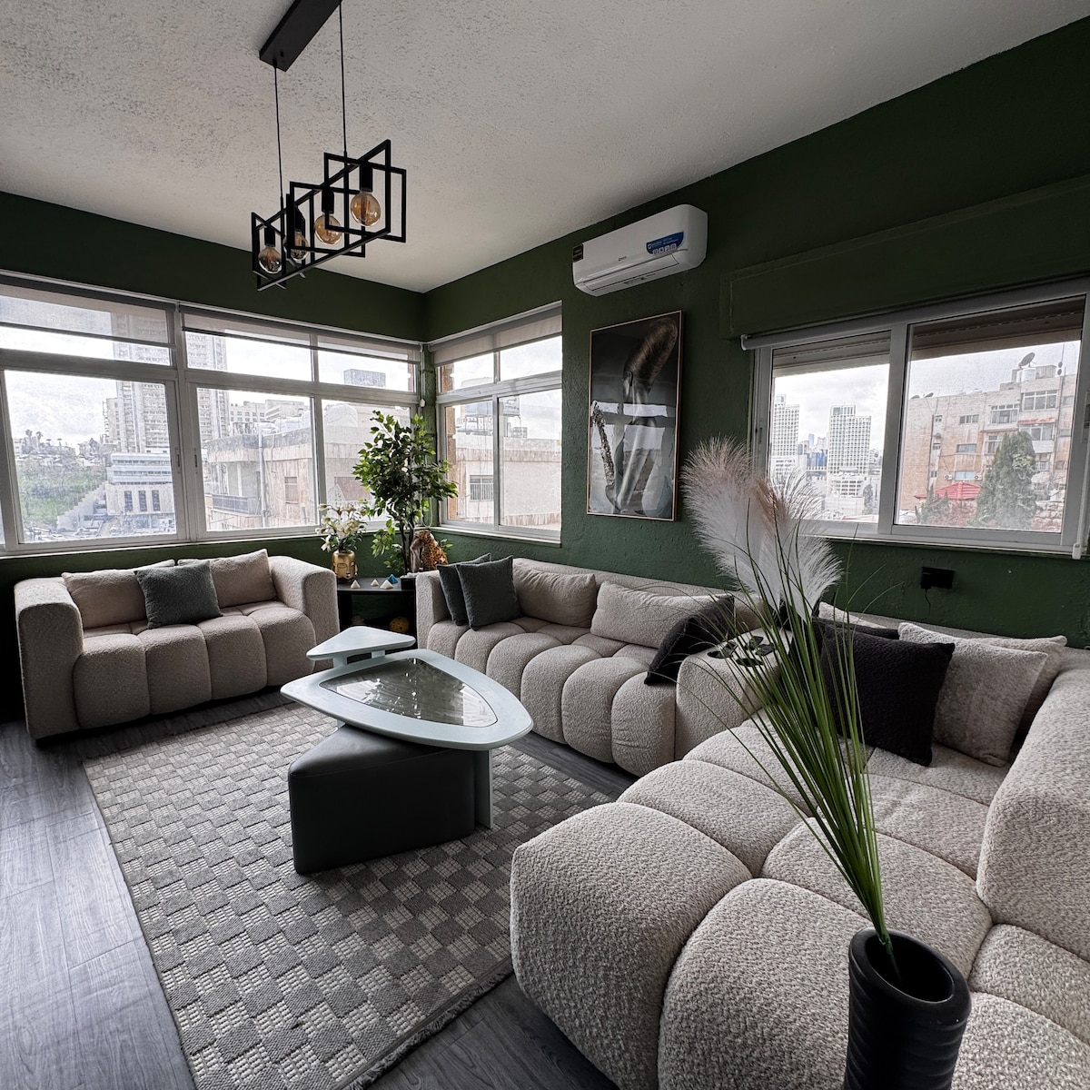 Enjoy a stylish and comfortable stay in this modern apartment located just behind the Four Seasons Hotel in Amman. Designed with a contemporary touch, the space offers a calm and elegant atmosphere, ideal for short or long stays. Fully equipped with a modern kitchen, fast Wi-Fi, and air conditioning. Close to top restaurants, cafés, and key city areas—perfect for business travelers, couples, and solo guests.