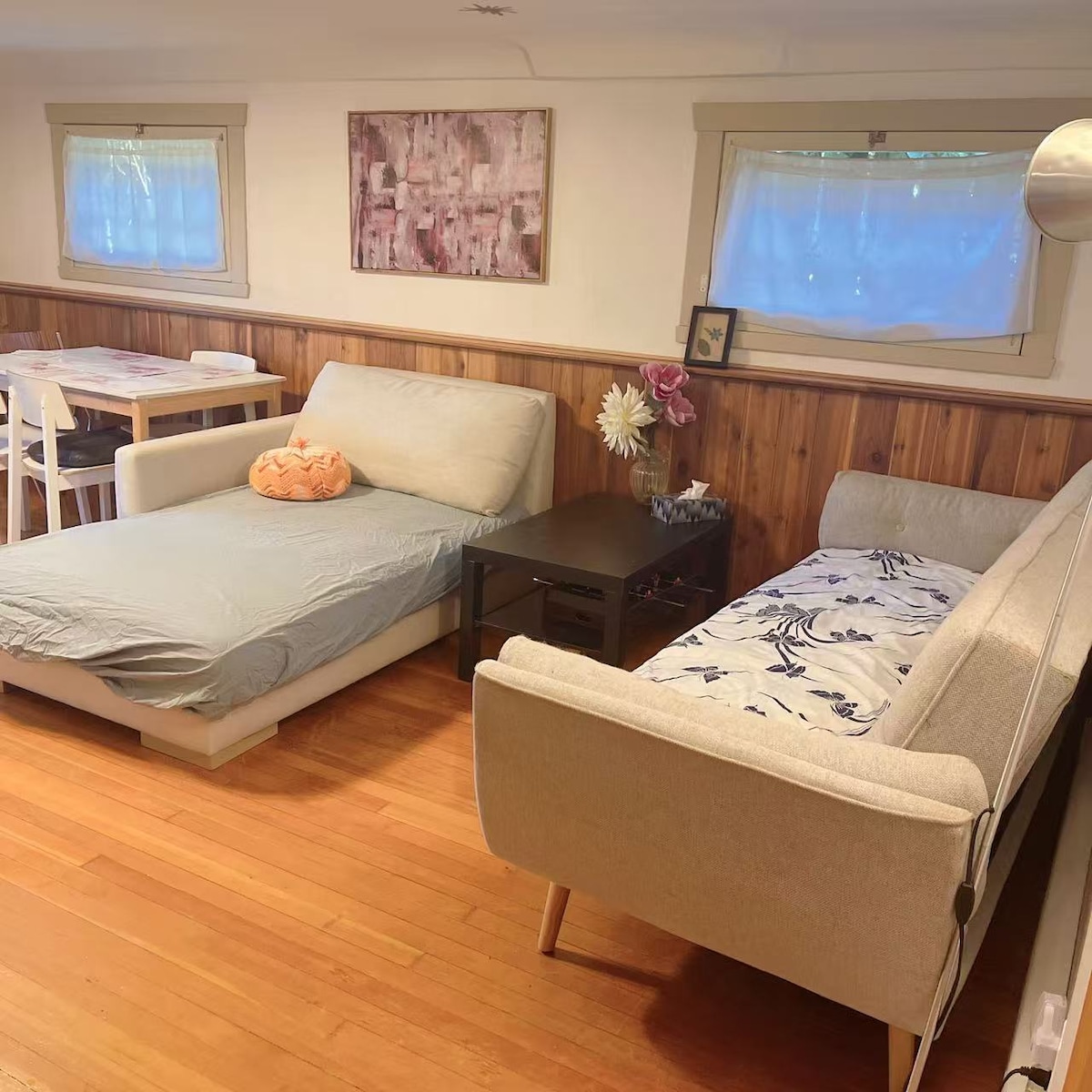 The house offers two comfortable bedrooms, making it an excellent choice for two couples or a family traveling together. The space is bright with the unique character typical of classic Kitsilano homes. Guests can relax in the cozy living area after a day of exploring or enjoy cooking in the fully equipped kitchen. For those on a staycation or working remotely, the home provides a comfortable and productive setting. Please note that this is an adults-only property, Age 12 up.