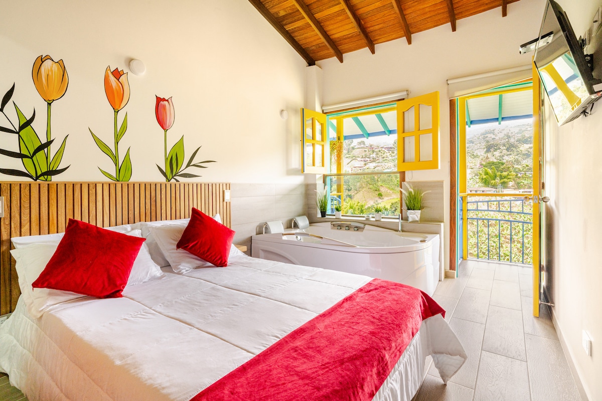 Disfruta tu hospedaje en este lujoso apartamento y vive la experiencia como un verdadero local en Jardín. Estarás ubicados a pocas cuadras del parque principal, el apartamento cuenta con Wi-Fi, auto check-in y calentador de agua. Durante tu estadía, podrás disfrutar de una cómoda habitación privada con baño, moderna cocina, comedor y amplía sala. A solo 5 minutos caminando tendrás cafés, restaurantes y atracciones locales populares. Un lugar con una excelente ubicación para explorar Jardín.