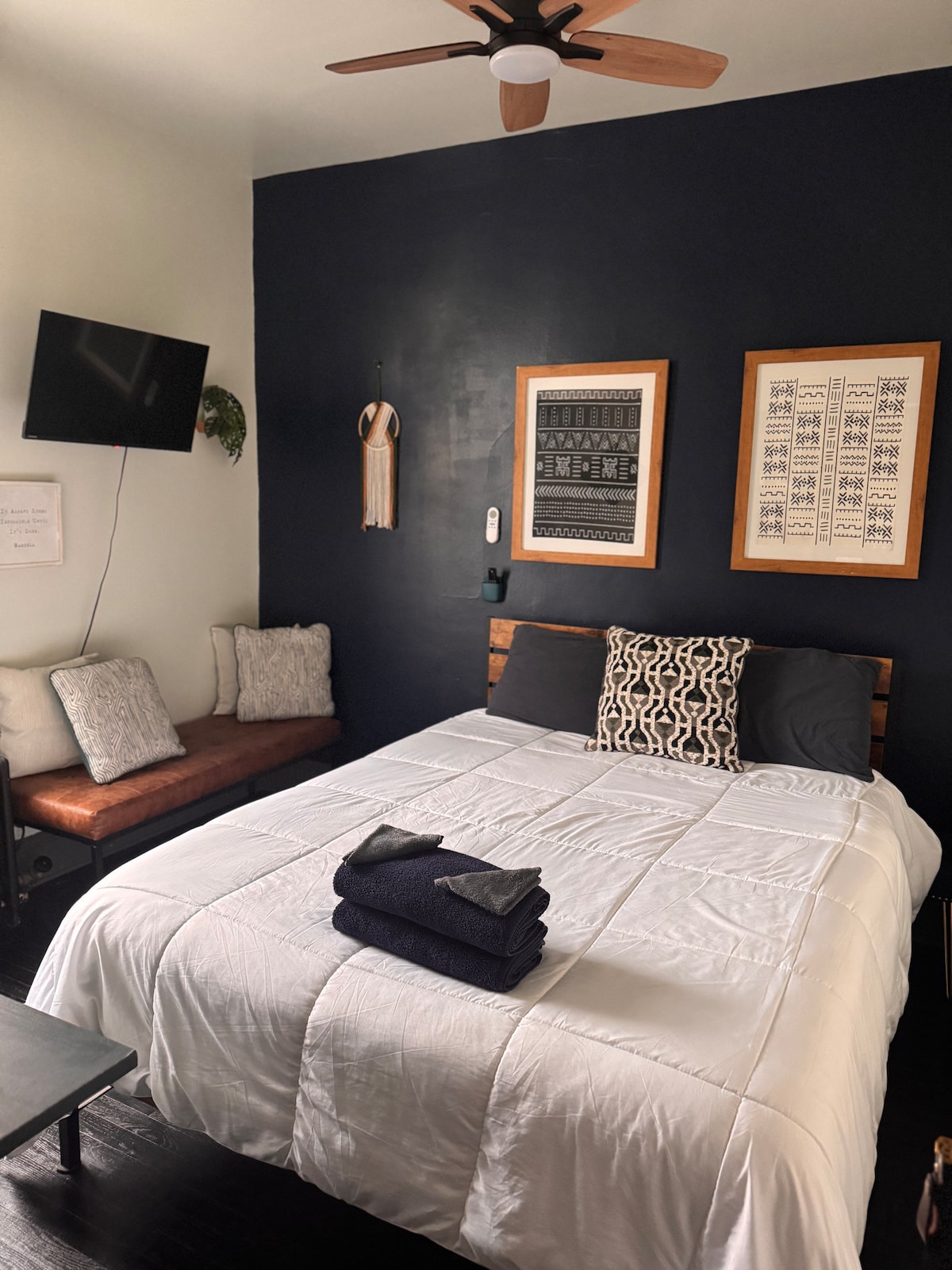 Welcome to The Urban Oasis! Nestled in Jersey City, this delightful studio space feels like a hotel and offers a soothing and beautiful retreat for guests. With an essence of the caribbean, you will be in relax mode and island vibes no matter the season. This cozy space comfortably sleeps 2-3 people (1 queen bed and 1 extra twin foldaway), private bathroom, and newly remodeled kitchenette. Amenities such as free WiFi, and outdoor patio space makes this space perfect for your getaway.
