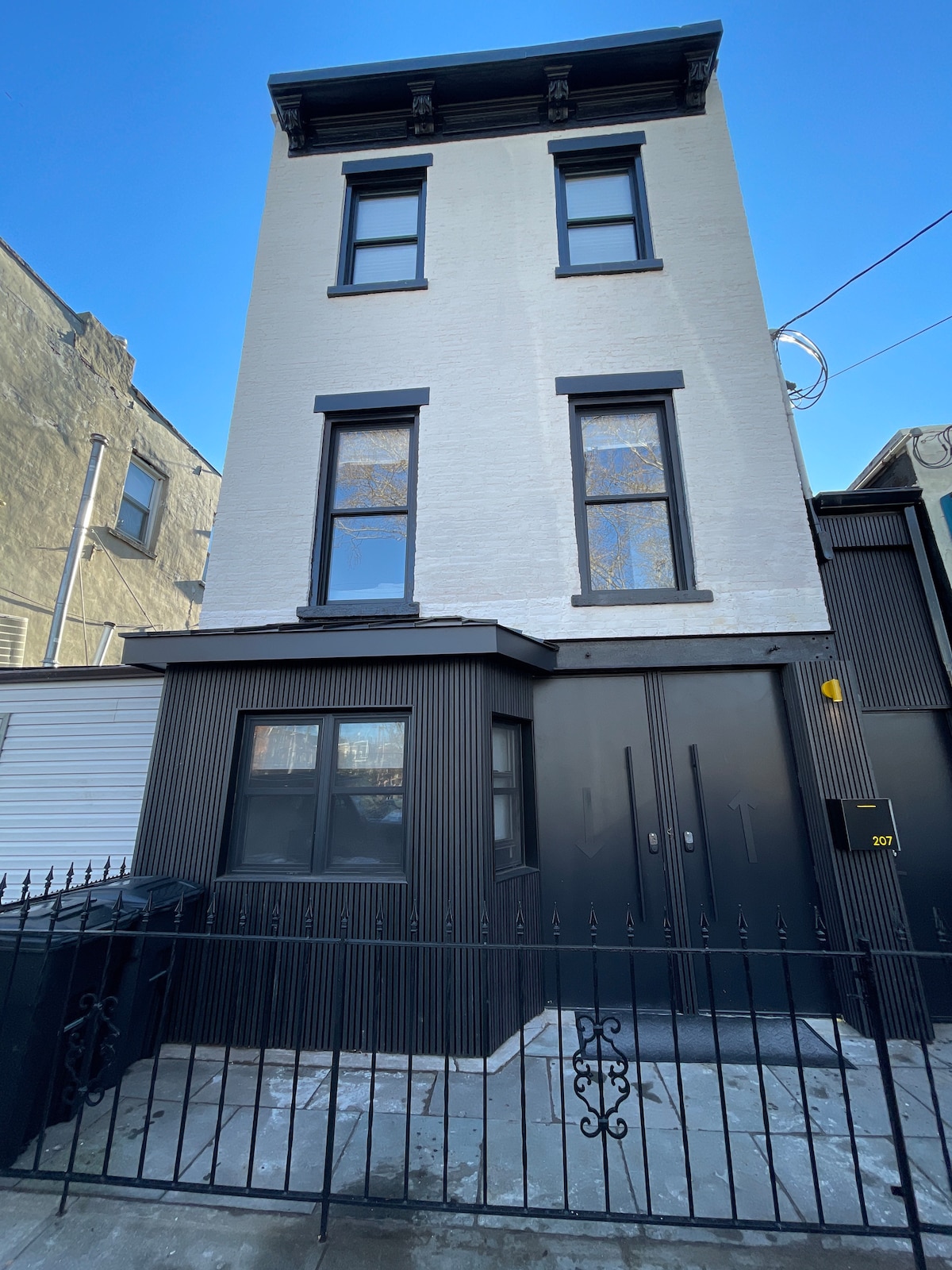 You're invited to stay in a charming historic brownstone row house. Located in a historical neighborhood of Jersey City. Newly renovated one bedroom apt. Enjoy access to the urban oasis in the backyard. The apt is outfitted with a sleek modern aesthetic to make your stay comfortable and pleasing. Amenities include Ice machine, hanging clothing rack, dresser, work area, hair dryer, Iron & ironing board and more. In walking distance of restaurants & coffee shops. 30 minutes to NYC.