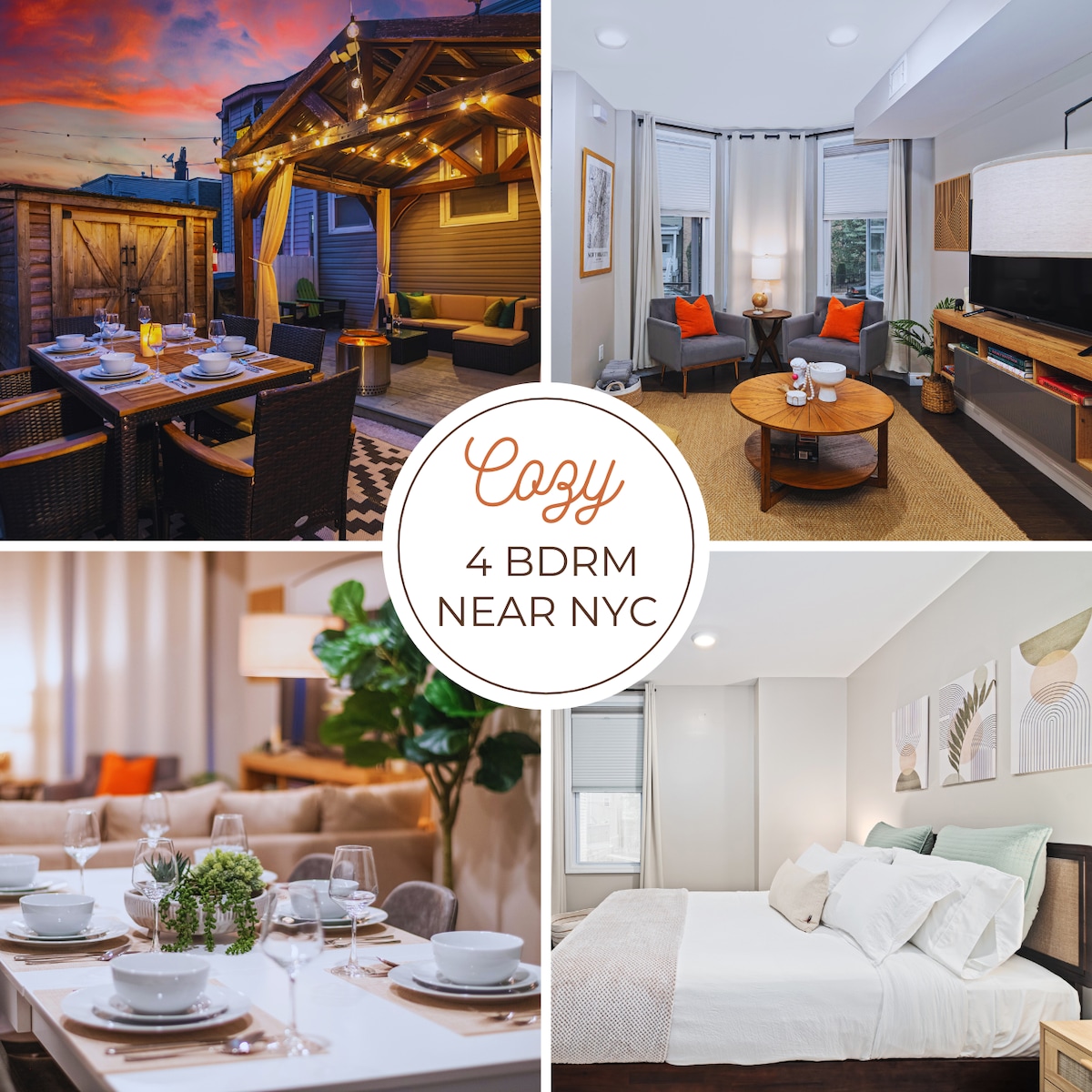 Welcome to your urban oasis in our beautifully curated home, just minutes from NYC! This spacious 4-bedroom, 3-bathroom retreat offers all the comforts and conveniences of a home away from home, including FREE parking and a cozy patio perfect for year-round outdoor dining and relaxation. Enjoy the best of both worlds: the serenity of a peaceful neighborhood combined with effortless access to the vibrant energy of New York City.