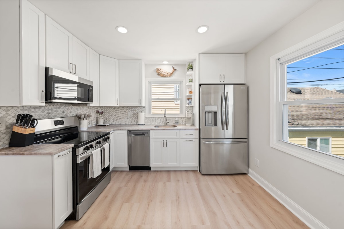 We are a 5 star rated Airbnb. We worked hard to earn that and harder to keep it. Our goal is to provide the cleanest and most beautiful experience in the Wildwood's. Beautiful sunsets every evening. Amenities include full kitchen, sub-zero refrigerator, dishwasher and all utensils. Washer and dryer included. Master bedroom with King bed and private tile shower. Living room with dining area. Both tv’s are smart, Hulu, Netflix etc.