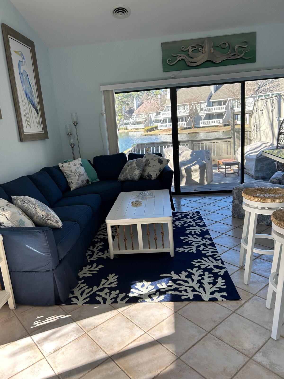 Lake front in Sea Colony Resort! Walk to beach, pools, tennis/pickleball, putting green, bocce, shuffleboard, fishing ponds, fitness center & more! 24/7 security. Completely renovated. Well equipped kitchen opens to bright living/dining area with seating for 6. AC, charcoal grill, washer/dryer, Wifi, 3 flat screen TV's & 3 queen beds. Beach tram & pool across street. Large deck with view of lake. No smoking or pets.