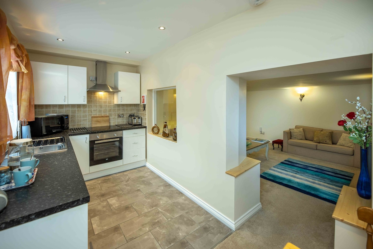 A sunny apartment on the St Helier outskirts offering a spacious and peaceful stay in fabulous Jersey. The accommodation consists of a master bedroom with ensuite bathroom and plenty of storage space. There's a separate sleeping area with one single bed. And a travel cot is available on request. Elsewhere, there's a large lounge with sofa, TV and dining table. In the kitchen, you'll find everything you need for dining in. There's also a WC, south-facing balcony and one dedicated parking space.