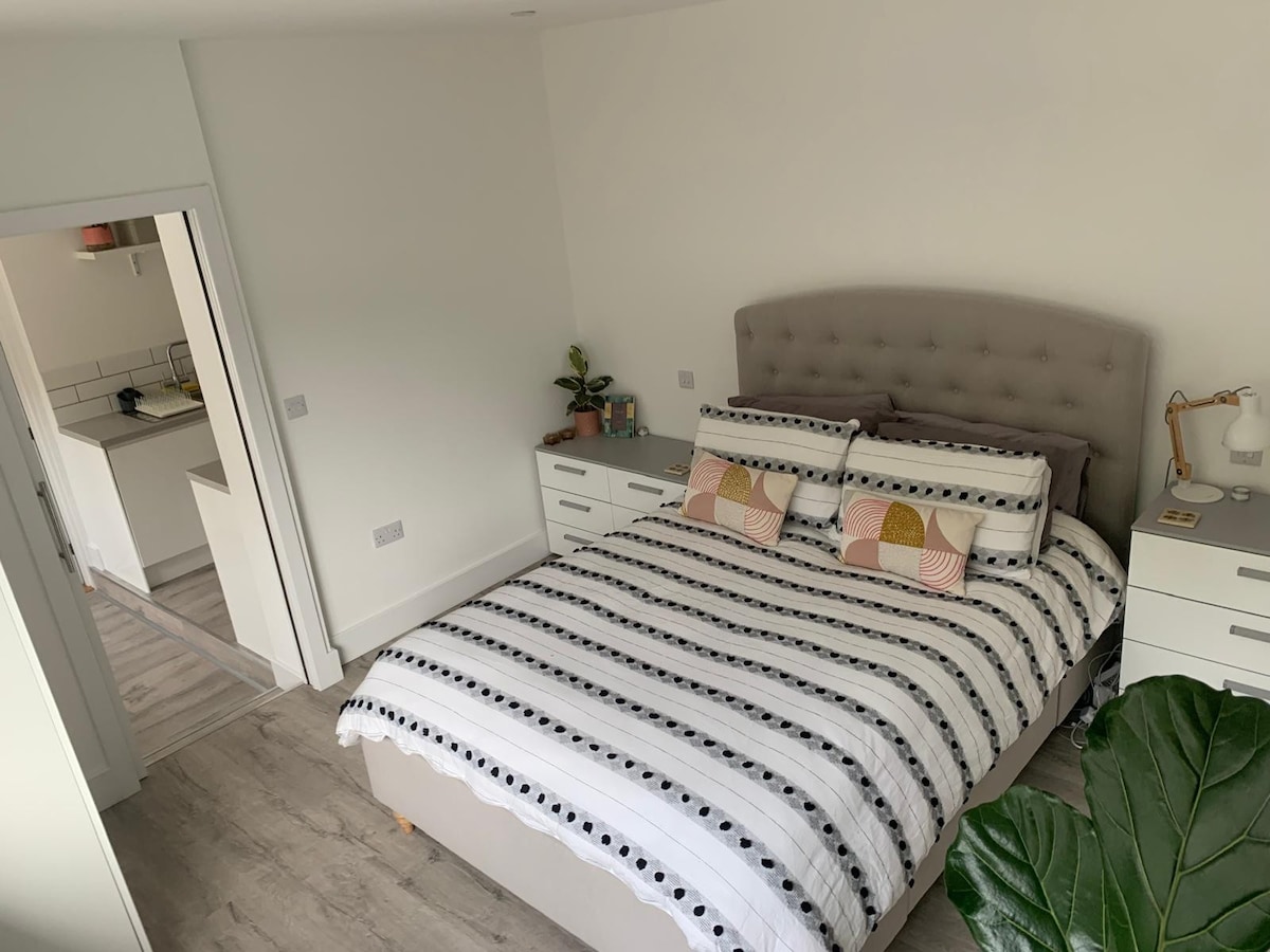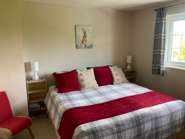 Welcome to our modern, spacious 2-bedroom cottage! Featuring two very large double rooms, one with a super king bed that can be split into singles. The elegant bathroom includes a walk-in shower and bathtub. The ground floor has a large, airy living room with a built-in desk and fireplace, and a spacious kitchen diner opening to a private garden with a deck, grass, and seating, overlooking a wildflower field. Enjoy off-street parking for one car in a lovely countryside setting.