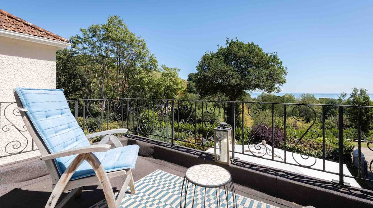 Share our life at the beach while we're away. Our family home is on the seafront with access over a cycle track down on the the sand. The house is a spacious 1930s home with private garden in the middle of the bay. The balconies over views from St. Helier to St. Aubin and are the perfect place to watch life run, walk and cycle by.