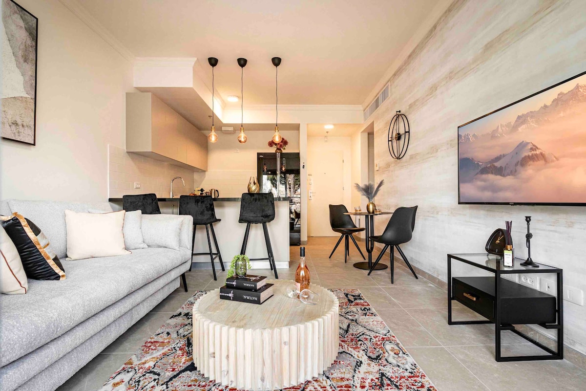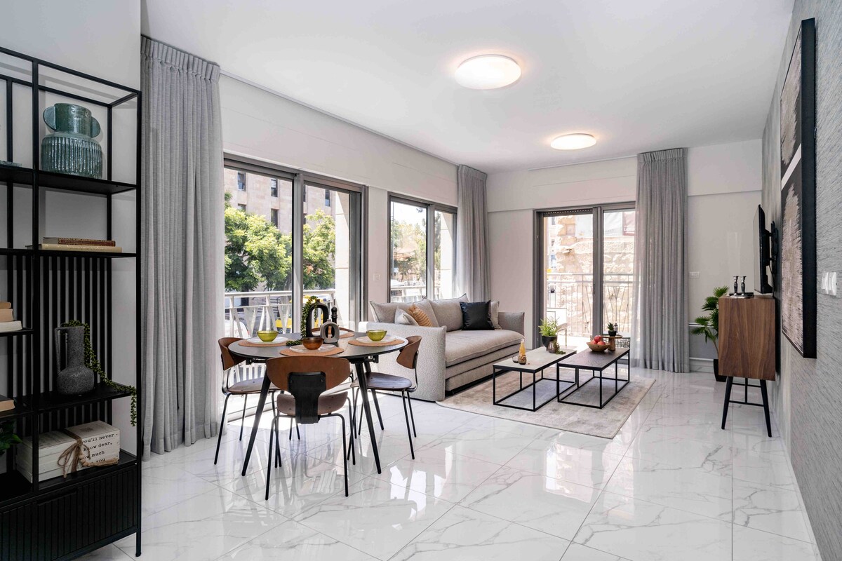 This sleek apartment overlooks magical Ha-Nevi'im Street, home to the famous Jerusalem landmarks of Davidka Square, the Italian Hospital and Tabor House. Be enchanted by the ancient stone homes surrounded by gardens and walls, walk over to the nearby Old City and Russian Compound, or stroll the lively pedestrian-only Ben Yehuda Street. You can catch the Jerusalem Light Rail to the Central Bus Station, where you can ride the Tel Aviv-Jerusalem railway to Ben Gurion airport in under half an hour.