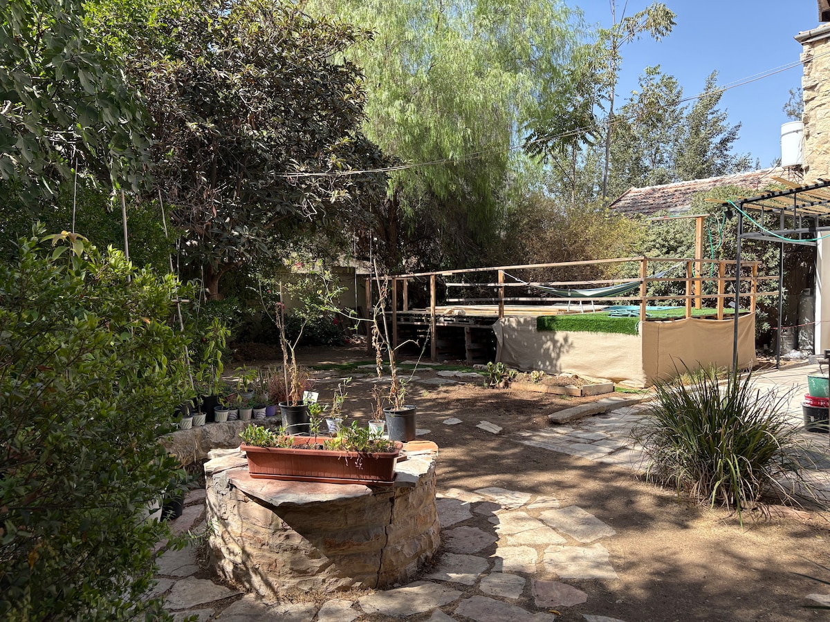בית סבתא ישן בעיצוב וינטג'י ייחודי המשרה אווירת רוגע ומנוחה. יש בריכה מחוממת (38 מעלות) חיצונית!!! הכי כיף לשבת בה כשיורד גשם. הבית במיקום מרכזי בהרי ירושלים, כמה דקות הליכה מהיער. קרוב למעיינות ומסלולי טבע מרהיבים. קרוב למגוון בתי קפה ומסעדות. במושב יש בית כנסת. בבית ניתן לארח משפחות, סדנאות, ריטריטים ואירועים קטנים. שימו לב כי הבית מגיע עם חתול המסתובב בחצר.