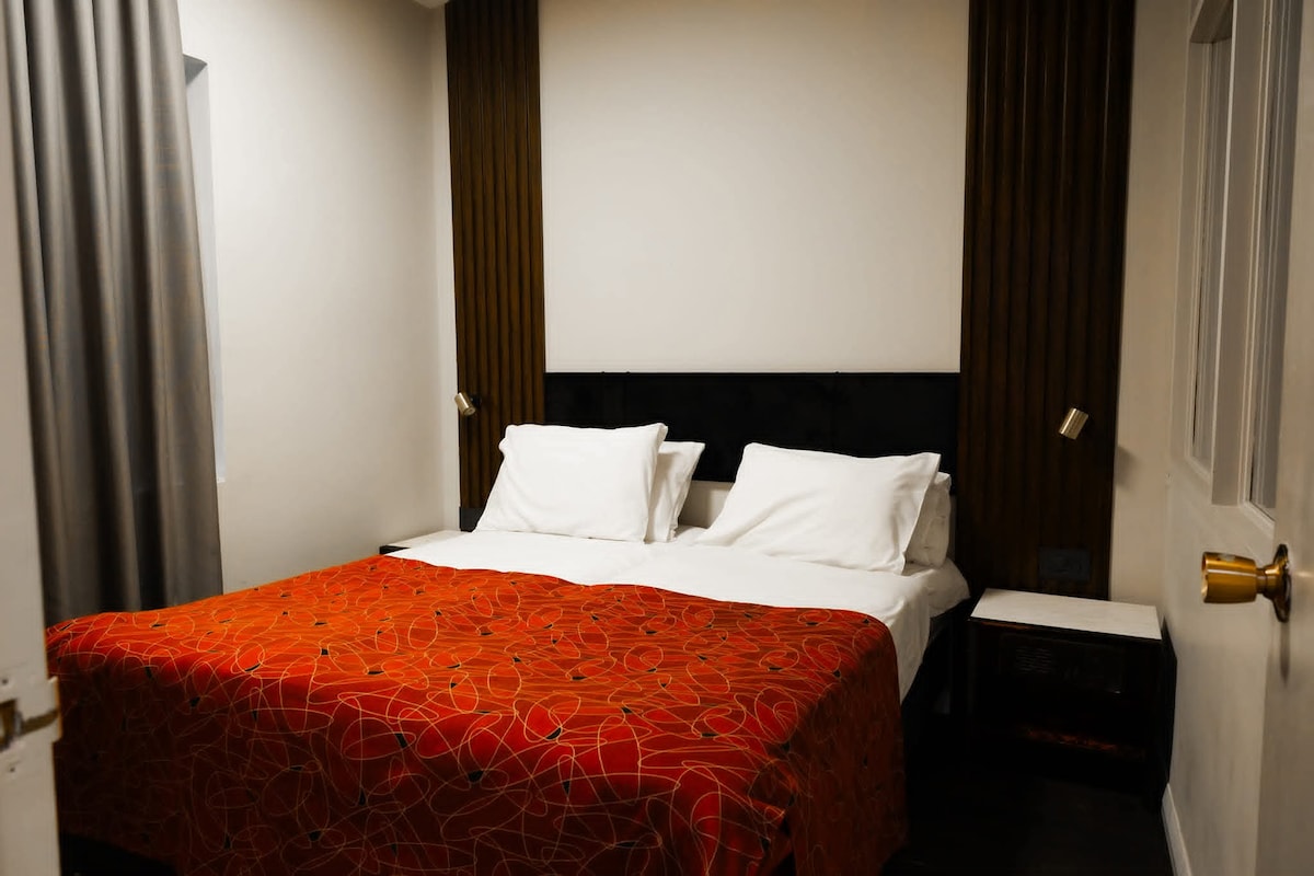 A compact, private room without a window – perfect for solo travelers or couples looking for value and privacy. Features a comfortable bed, air conditioning, smart TV with Netflix, desk and chair, reading light, and secure lock. Shared bathrooms are kept clean and well-maintained. Guests also enjoy access to a fully equipped kitchen and a cozy lounge area in a central location.
