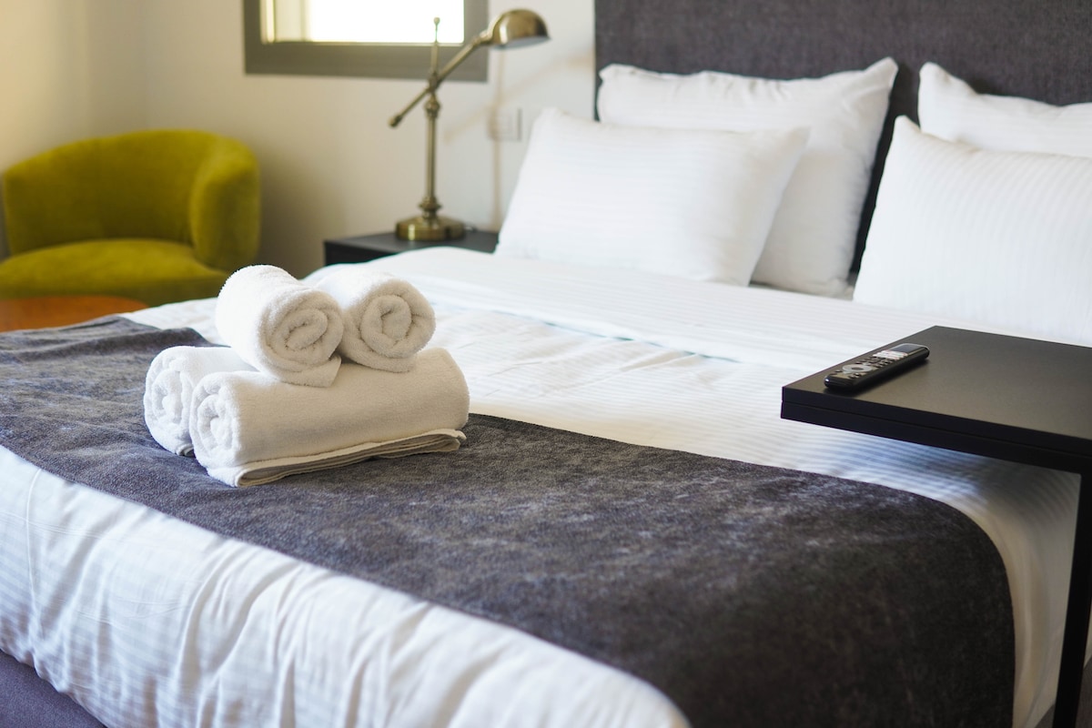 יחידה מעוצבת ומרוהטת בקפידה בגודל 16 מ”ר, עם נוף מרהיב לממילא. החדר כולל מיטה מפנקת, פינת ישיבה וחדר רחצה פרטי. לרשות האורחים פינת קפה עשירה עם מבחר משקאות חמים, עוגיות ופינוקים. חלון גדול מכניס אור טבעי ומשקיף על הנוף הקסום של ירושלים. המיקום מושלם – במרחק הליכה מהעיר העתיקה, שדרת ממילא, מסעדות ובתי קפה. אידיאלי לזוגות, מטיילים בודדים ואנשי עסקים המחפשים אירוח נוח ומרכזי. שירותי ניקיון יומיים כלולים. לרשותכם בר מים עם מים חמים, קרים ורותחים. ⭑⭑⭑⭑⭑ הזמינו עכשיו לחוויית אירוח מושלמת בירושלים!