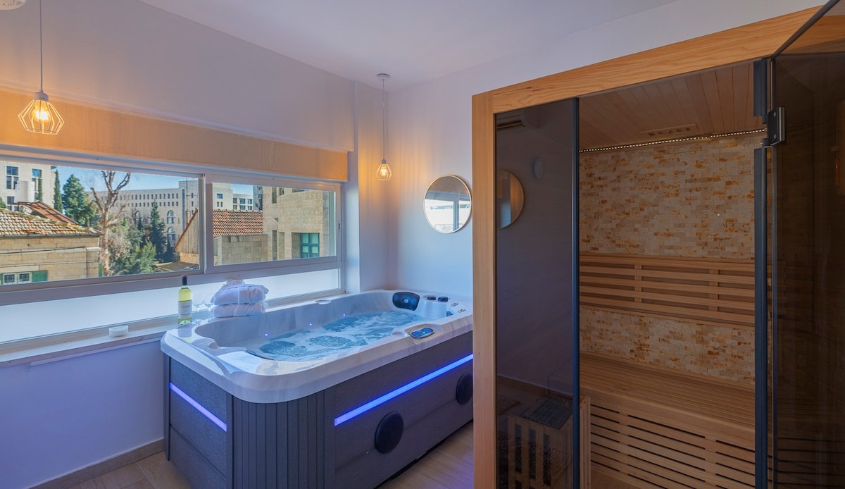 amazing mamilla private spa with luxury designed suite connected the private spa room got top dry Sauna and top professional jacuzzi the spa is across mamilla hotel and Waldorf hotel ,prime location! walking to shuk,city center old city, and rechavia first floor with no elevator full kitchen full bathroom kosher bed very spacial experience for couples !!