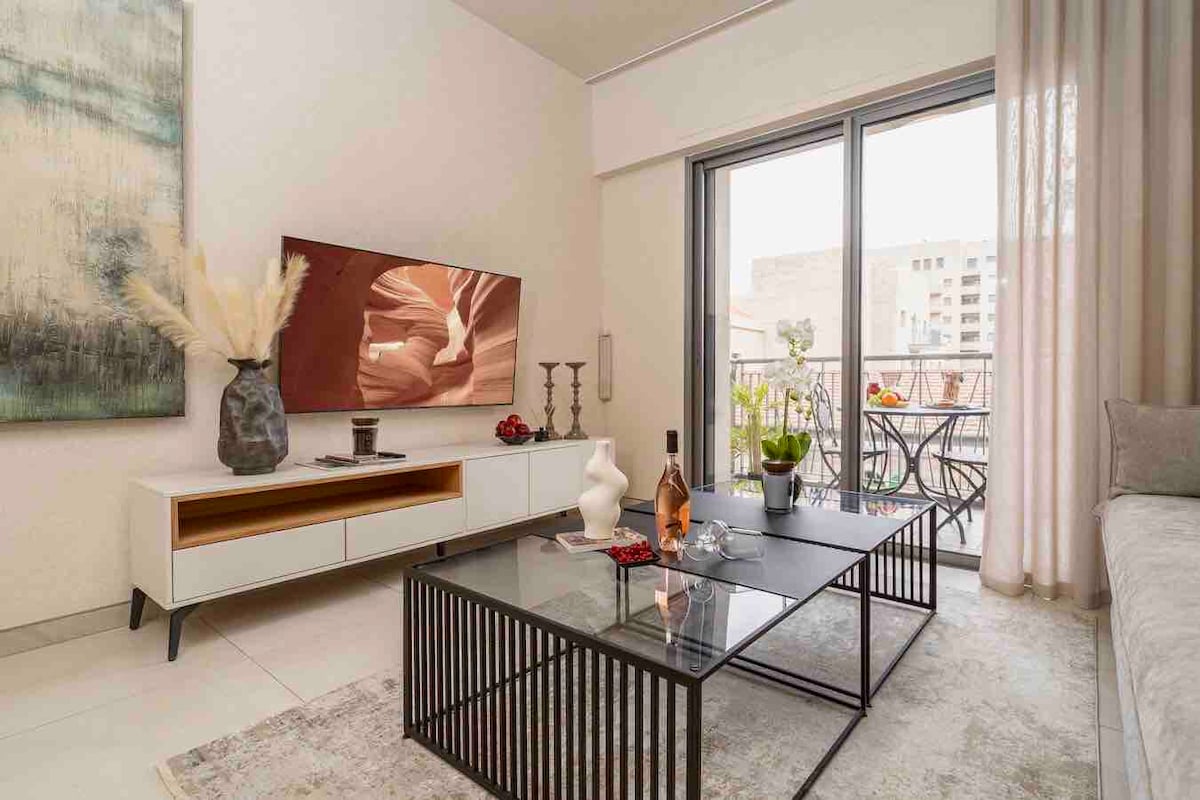时尚的1卧室公寓,带阳台,可欣赏Ha-Nevi'im橄榄山景观