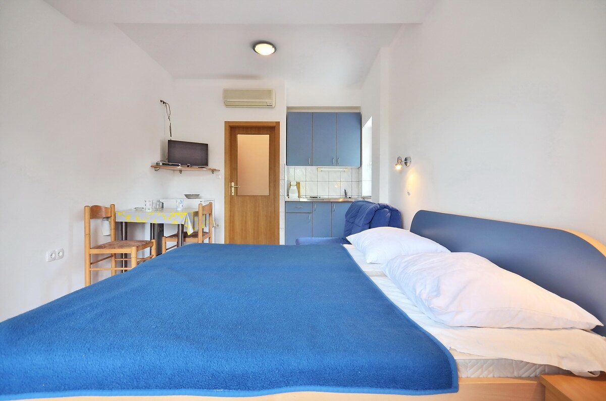 This beautiful apartment is located seconds from the a pebble beach which is directly accessed by a private staircase. The small terrace in front of the apartement is perfect for relaxing breakfasts with the sound of waves hitting the shore and dinners with stunning views of the sun setting behind the surrounding islands. The apartment comes equipped with a small kitchen which enhances the "home sweet home" feeling. The apartment accomodates 2 people. A secure parking is offered FOC.