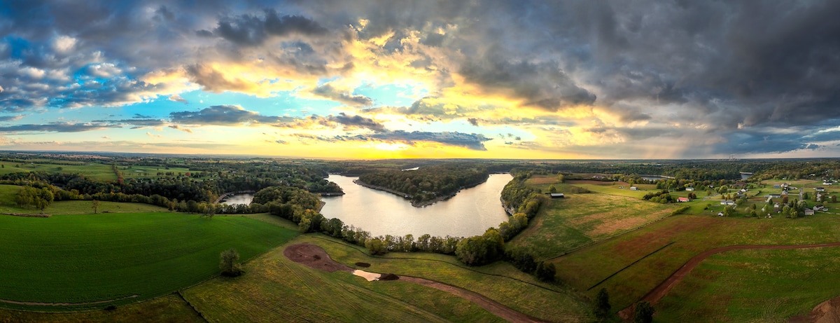 Tucked above Herrington Lake, this remote, family-friendly cabin is perched on a scenic bluff, where you can truly unplug and unwind. Whether you're here to slow down, connect, or explore this is your spot. Surrounded by nature and nestled in the heart of the legendary Bourbon Trail, your days here are yours to shape. Sip your morning coffee while watching herons glide across the water, take a refreshing swim, explore the shoreline by kayak, or nap the afternoon away on the porch.