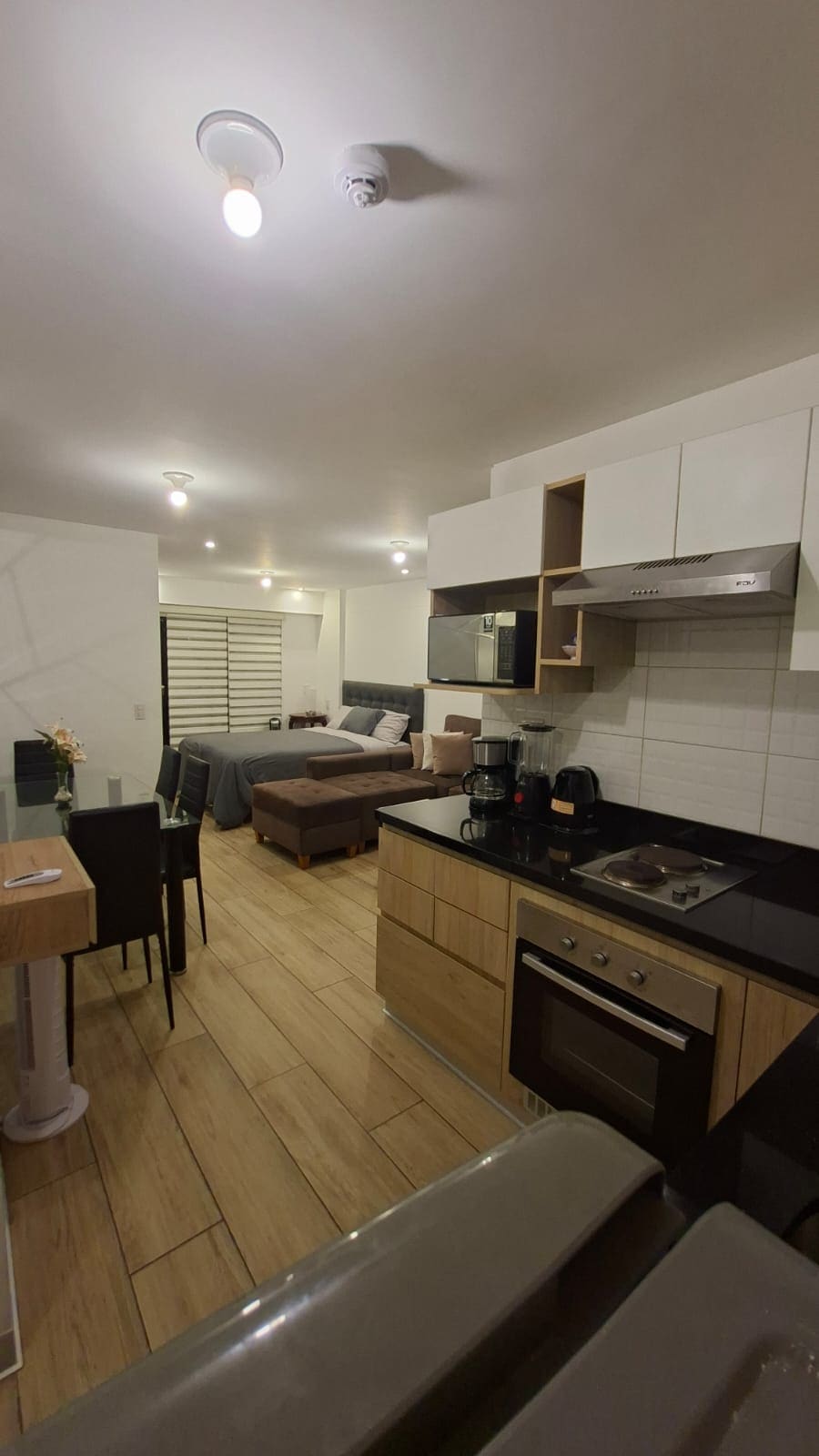 Modern fully furnished apartment, ideal for long stays. Features high-speed Wi-Fi, a 65” Smart TV with Netflix and Disney+, a fully equipped kitchen with espresso machine and water filter, washer-dryer, queen-size bed, and a balcony. The building offers a swimming pool, gym, and coworking area. 24/7 self check-in, smartkey, free parking, and 24-hour security. Strategically located in San Miguel, close to universities and shopping centers, and less than 20 minutes from the airport.