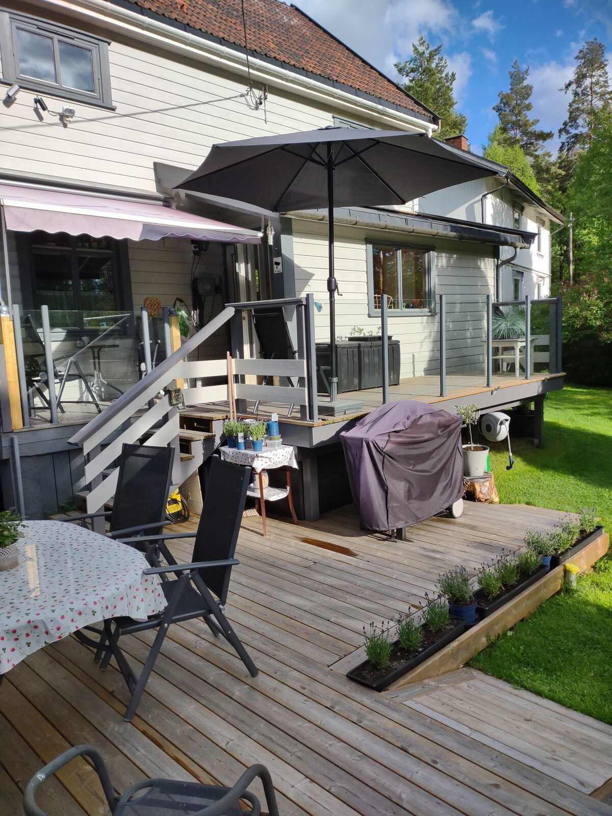 Lys suite for 2-4 pers. Oppreid seng til to pers. Grunnpris sengetøy,håndklær inkl. for 2 pers. Dobbeltseng i stue for 2 ekstra kr.350,-pr.pers Sengetrekk ,håndklær til 2 ekstra finnes. Gratis parkering. Wifi, Ønskes tillgang til massasjebadet?Ekstra kostnad kr 400,- i 1,5t. Dere er alene i massasjeb. ved booking i 1,5 time.Det er greit skjermet, vi bor i huset og bruker egen terrasse i andre etasje.Begrenset innsyn til gjesters uterom på bakkepl.