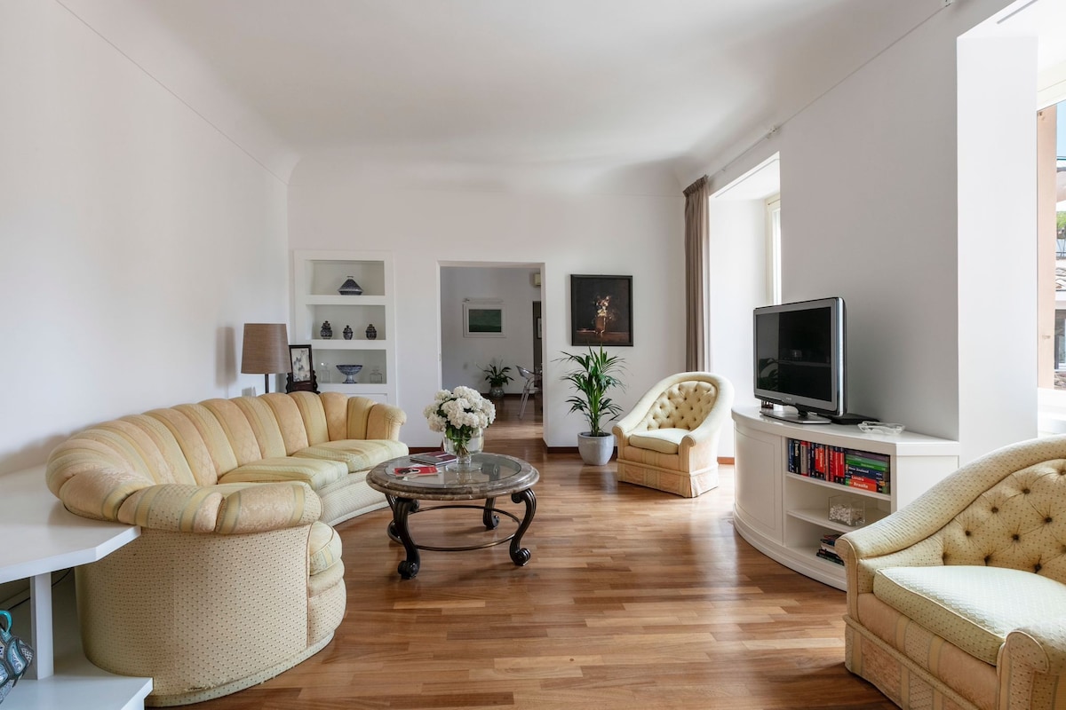 Marvel at the clever use of space in this cheerful studio that offers the perfect combination of style and practicality. Enjoy the mix of furniture crafted by Italian artisans and designer pieces, including Herman Miller chairs. The studio is on the fourth floor (US 5) of an old building in the heart of Rome and has NO lift. The high-quality materials and attention to detail make the apartment both stylish and relaxing. The double glazing completely insultate from outside noise. SCIA N. 13852