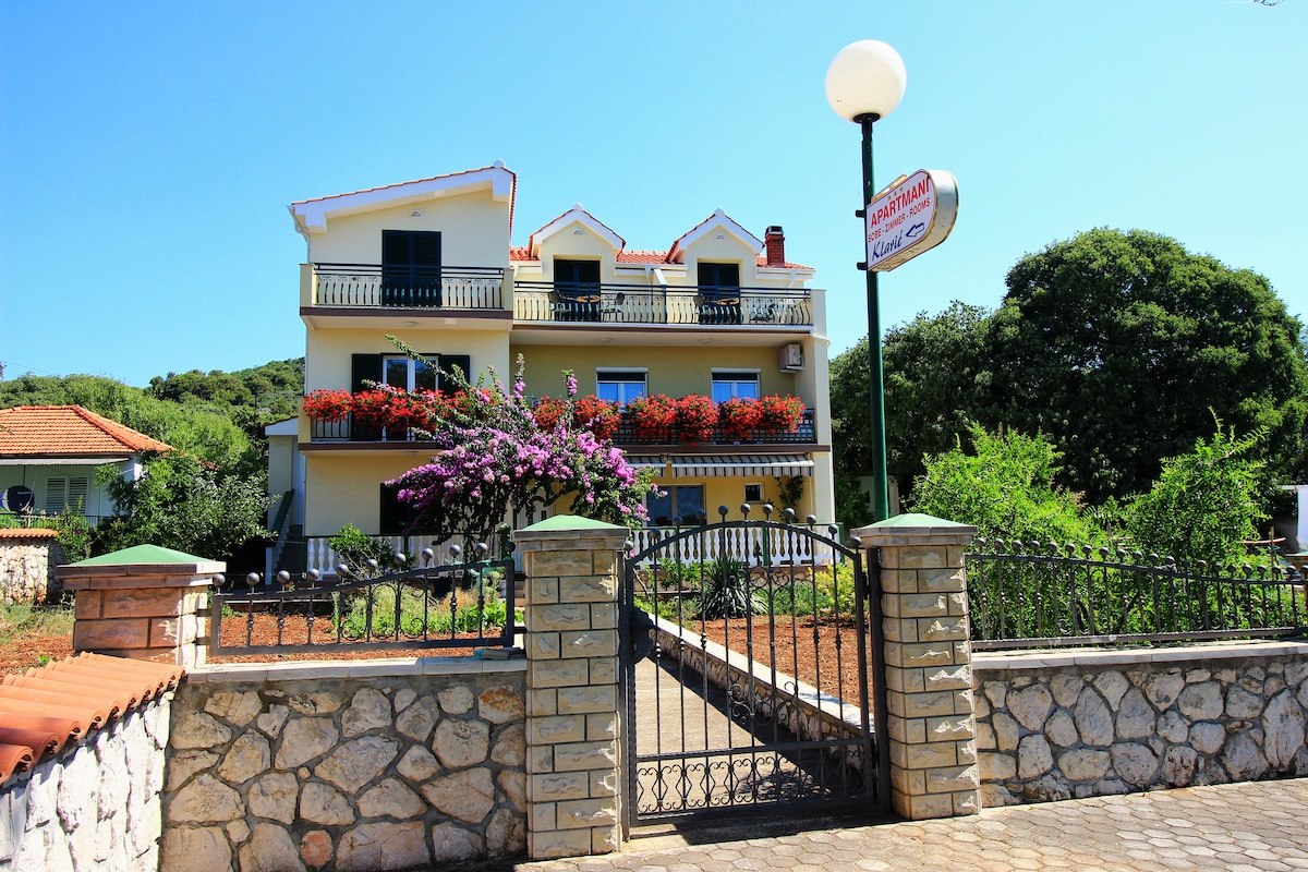 Nice apartment accommodates 4 persons, close to nearby town Tisno, the host of a Garden festival (500 m to Tisno, 2,5 km to Garden festival on foot). App has 2 bedrooms, living room, dining room with kitchen, free parking, AC, free wifi...