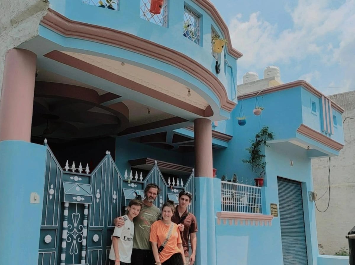 The house is located 750 meters from the center. The magnificent view of the Laxmi-Narayan temple and other beautiful monuments makes this place unique. You can enjoy the rooftop for counting the stars at night & the monuments during the day. The family stays on the ground floor. The 1st floor with 2 bedrooms, open sitting space & a terrace with private entry is listed for Airbnb guests. The Hot/Cold shower & king-size bed with an extra comfort mattress will make you feel at home.
