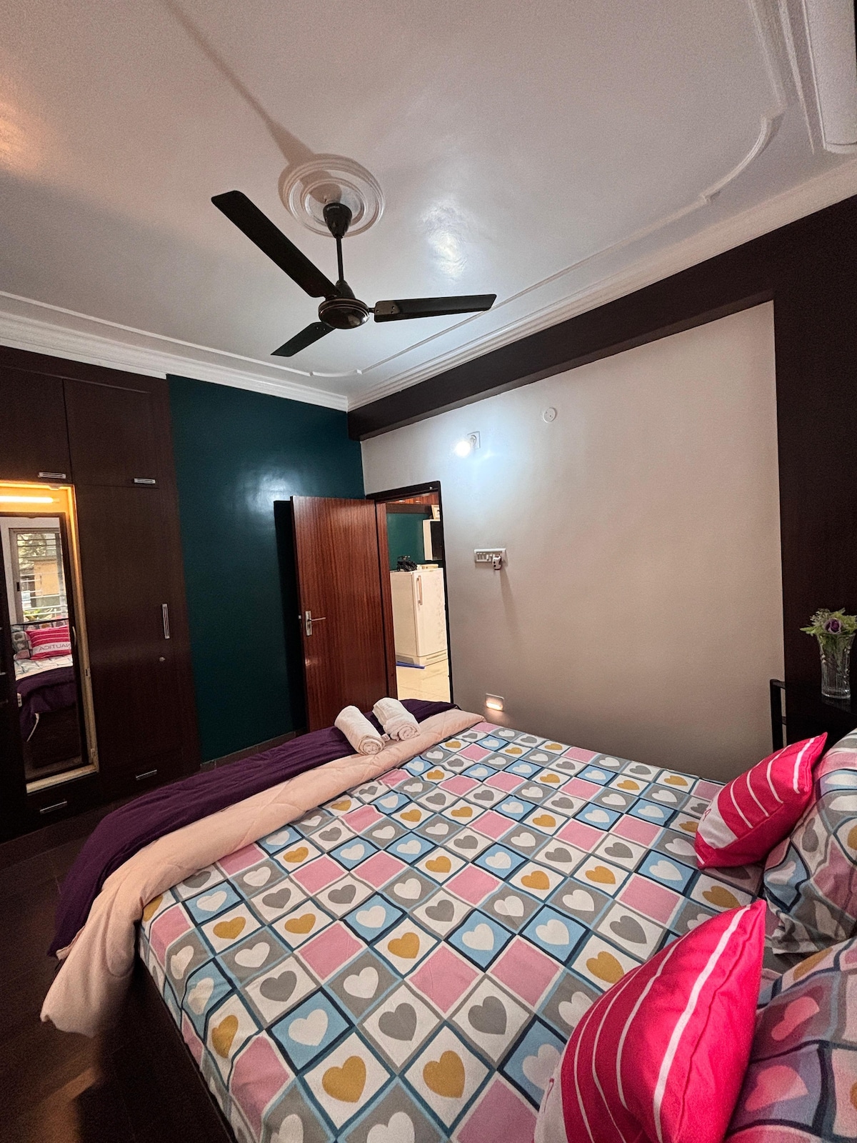 There are 2 big size bedroom with attach big size bathroom and a common room with bathroom.On the entrance there is bright & spacious common lounge, dinning, working area with patio & balcony , along with a large & equipped kitchen. you are travelling with a group of friends or family, you can rent the whole of the 2-bedroom and enjoy the space in total privacy. The apartment is perfect for 4 people but up to 6 people can be accommodated for an extra charge.
