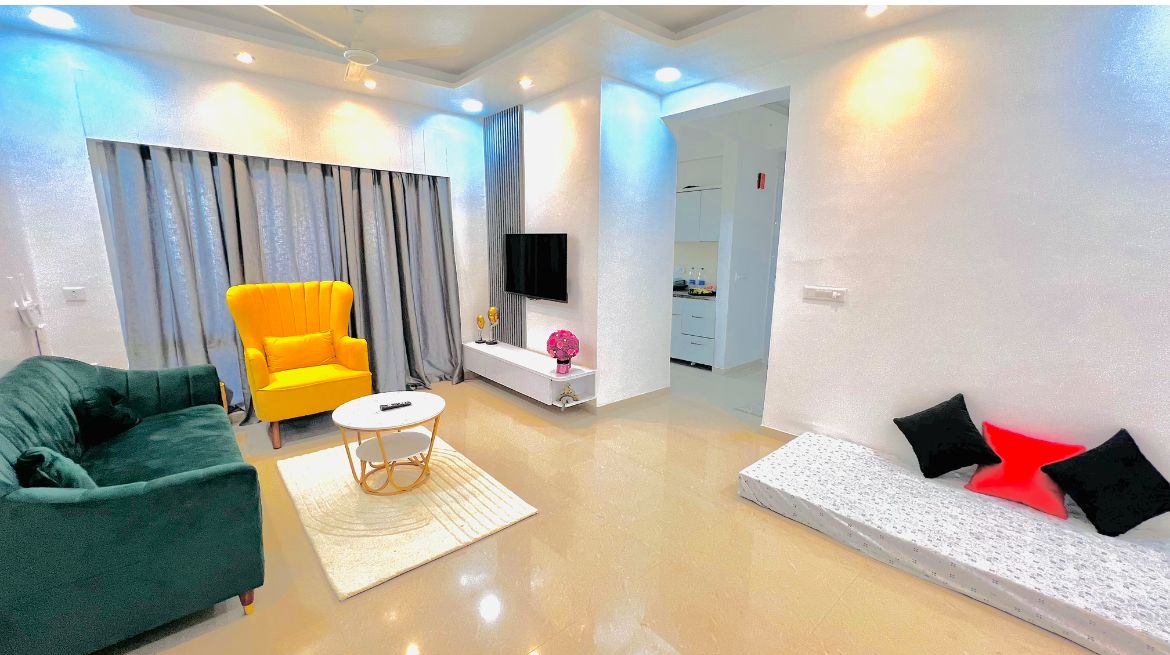 Welcome to our Positive Minimal Breeze Apartment, a serene 10th-floor retreat designed for ultimate relaxation. With spacious, minimal interiors, it offers a calming ambiance perfect for unwinding. The apartment boasts a stunning Yamuna-facing view, & from the balcony, you can enjoy a breathtaking panoramic view of the Kumbh Mela grounds. Just a short walk to the Ghats, this peaceful escape also features a refreshing pool, blending comfort, beauty, and spiritual charm for a truly memorable stay.