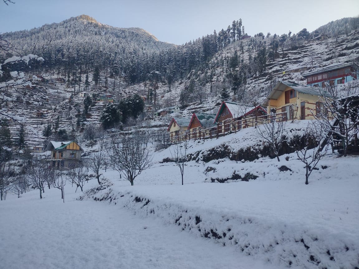 “Adventure awaits at our unique hideaway.” *In the middle of Apple garden and Pine Tress. *• Food service & caretaker * •Wi -Fi *• Bonfire and Garden area. *• Fire pit area *• Indoor dining area. Please note:- There is 500 meter trek down from parking spot to reach at property, Your luggage will be carried by us.