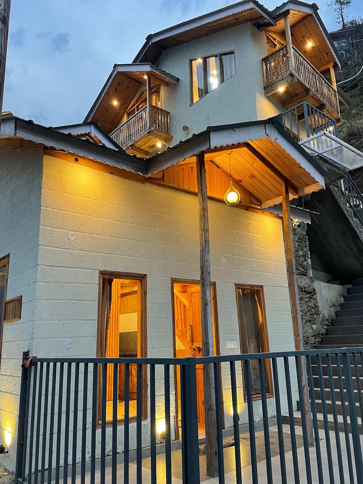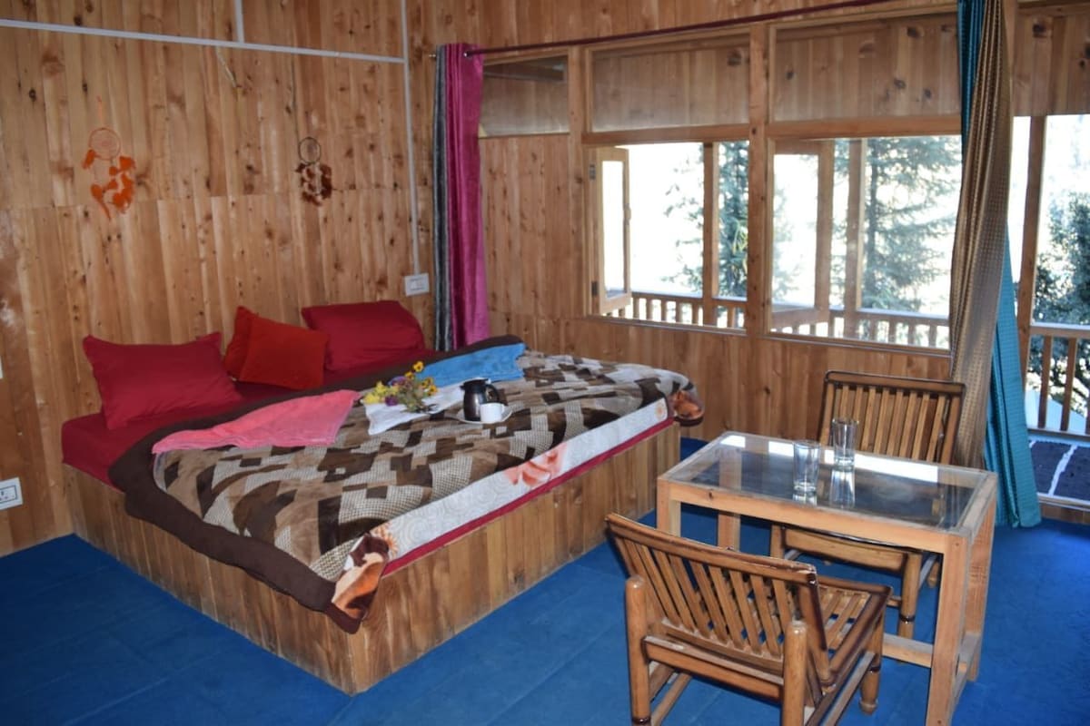 Kick back and relax in this calm, stylish space. * Wifi * Power Backup * Food service & caretaker * Private garden * Pinewood architecture * Safe Parking * Local tips * Bonfire Please note - There is 500 mtrs trek from parking spot to the property, We will pick your luggage. - Price includes stay only. Breakfast, Meals, Room heaters, Bonfire & All other services are excluded.