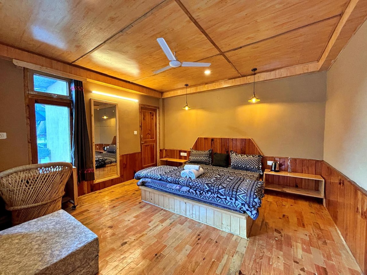 Stay at the best cottage in jibhi, Tandi village , surrounded by majestic mountains and lush greenery. Our cozy wooden cottage offers a peaceful escape with stunning balcony views of rolling hills, snow-capped peaks, and dense forests. Relax in the serene atmosphere and enjoy delicious meals at our on-site cafe. If you’re looking for the best accommodation in Jibhi , our cottage is the perfect retreat for nature lovers and travelers seeking comfort amidst breathtaking landscapes.