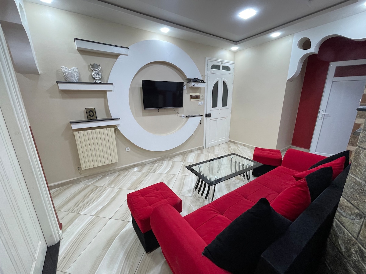 Location appartement meublé situé au réz de chaussée, à Jijel centre-ville,composé de 3 chambres équipées de TV, chauffage , machine a laver gratuit , climatisation ,eau froide chaude 24H ,équipée de wifi et Internet garage pour la voiture endroit très calme et sécurisé, à 1.2 kilomètres De La Plage 100 m de la mosquée tous les magasins et les restaurations son très proche et je suis toujours proche pour vous aider et merci et bienvenue.