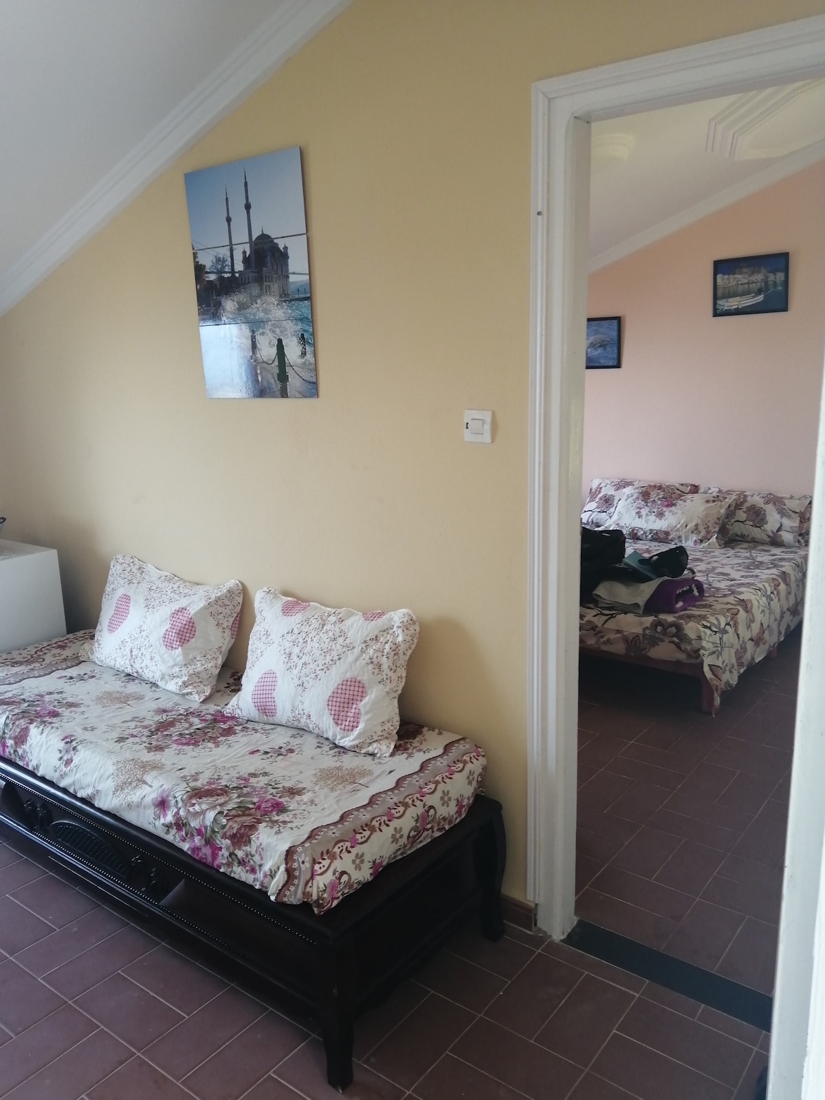 We welcome you to our studio in a countryside villa, located in eastern Algeria in a tourist region, Ziama Mansouriah JIJEL, in a trendy and multicultural neighborhood. It features a spacious room with two beds (01 double bed + 02 separate beds for two people), complete with sheets and blankets. The equipped kitchenette and balcony offer views of the famous port of Ziama Mansouriah. The sea is 900m away from the house.