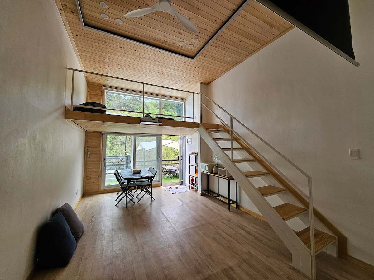 별채로 단독사용이고 유기농마을이라 공기도 깨끗합니다. 귀농하여 유기농으로 농사를 짓습니다 팬션단지 아닌 시골마을이라 시내처럼 큰마트는 없어요. You can use it alone as a separate building. On the 1st floor, there is a living room, kitchen, toilet, and utility room, and on the 2nd floor, there is a dirt bed and deck.When you open your eyes in the bedroom, you can enjoy the sunshine and countryside through the window. The air is clean because it is an organic village. You can hear the sound of unnamed birds. It's a rural village.
