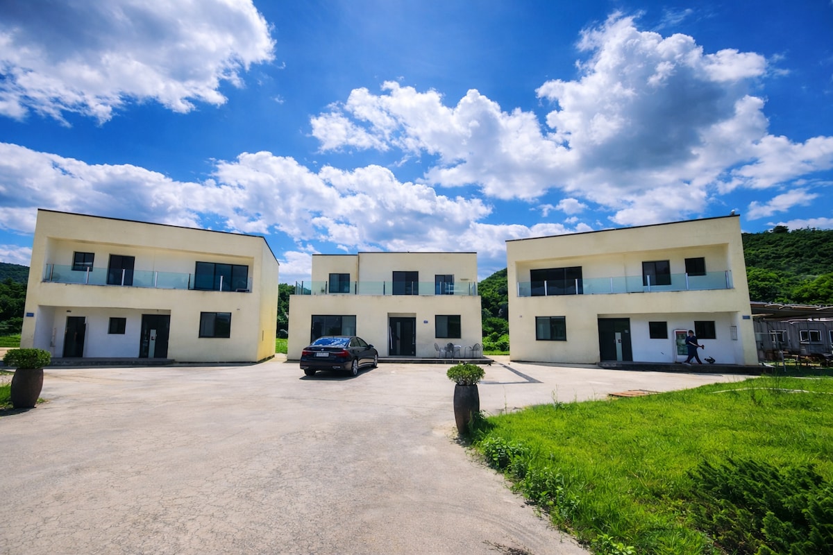 Spacious private retreat nestled in the serene nature of Gapyeong, offering the perfect setting for unforgettable moments. You’ll wake to warm sunlight and end your day beneath a sky overflowing with stars. With over 165 square meters of indoor space and over 1,300 square meters outdoors, is perfectly suited for family getaways, gatherings with friends, and workshops. Thoughtfully designed amenities and warm hospitality await, making your time with loved ones even more meaningful and enjoyable.
